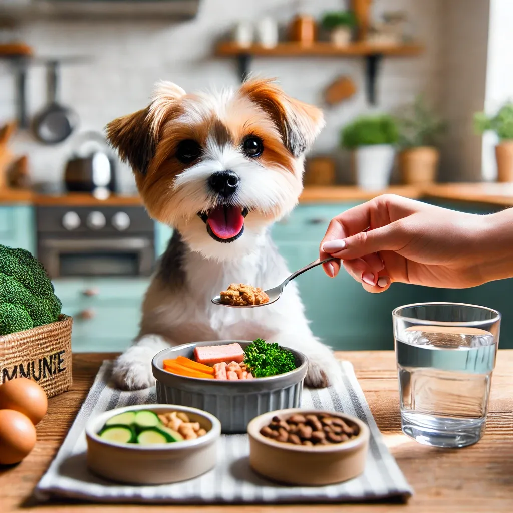- 습식 사료 제공: 강아지가 먹기 쉽게 습식 사료를 제공하거나 평소 좋아하는 음식을 준비해 주세요.