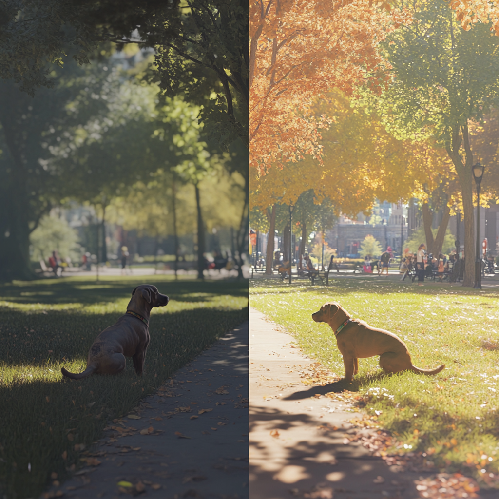 강아지의 시각과 인간 시각의 비교