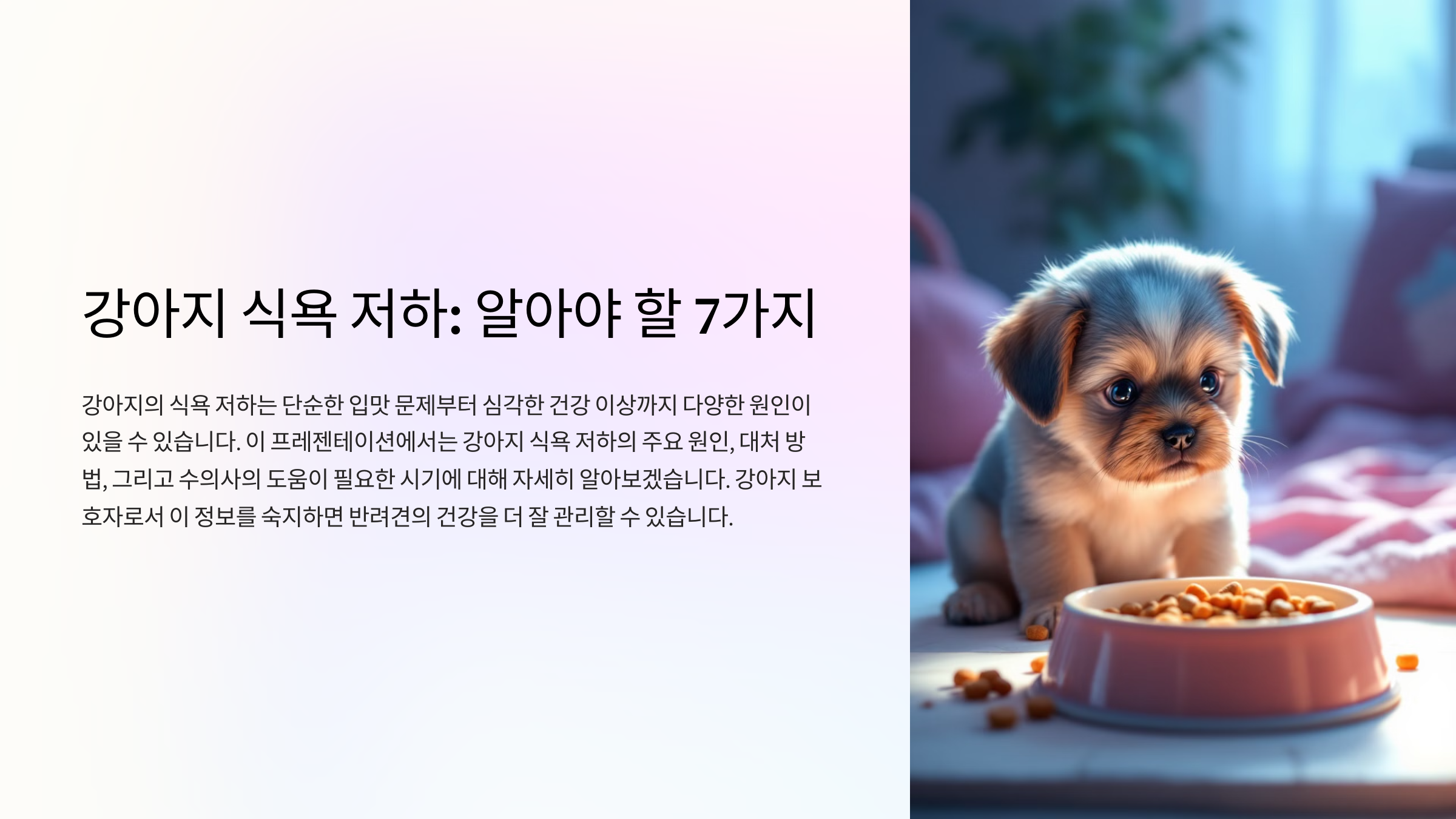 스트레스는 강아지 식욕 저하의 주요 원인 중 하나입니다. 환경을 안정적으로 유지하세요.
