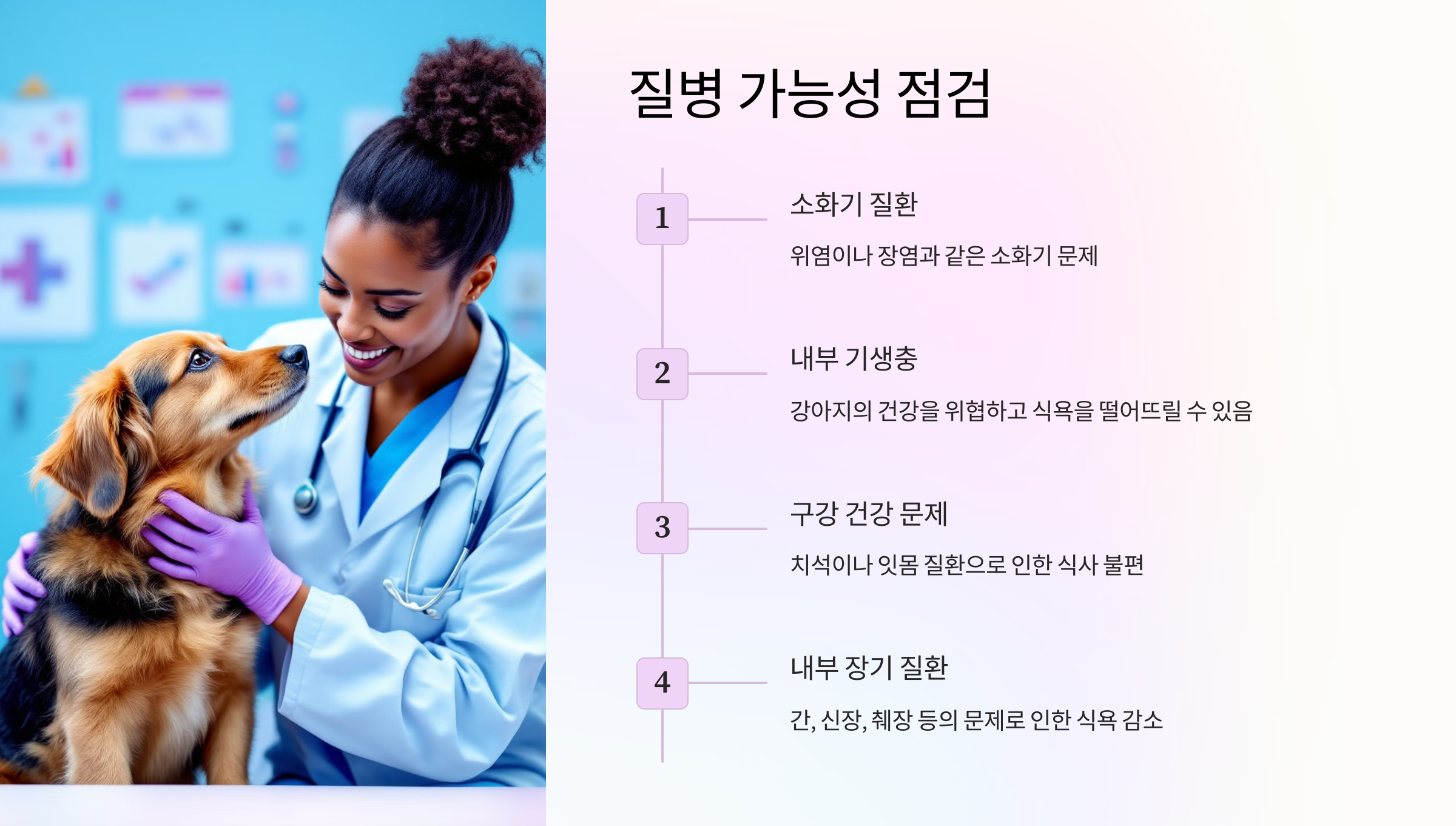 강아지의 식욕 저하가 지속될 경우, 질병 가능성을 반드시 확인해야 합니다. 다음은 주요한 질병 유형입니다.