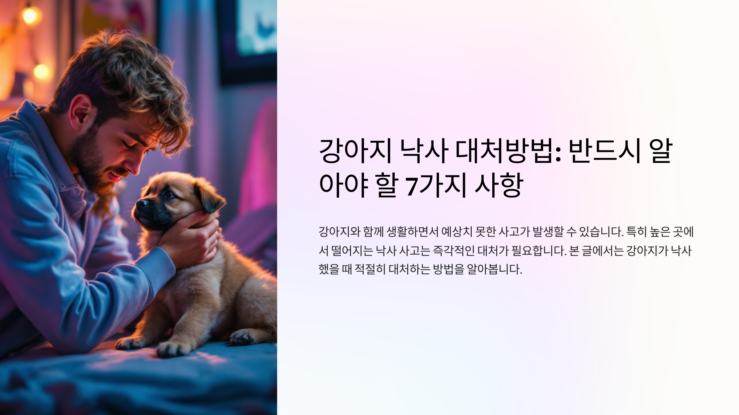 낙사 사고를 겪은 강아지는 심리적으로도 충격을 받을 수 있으므로, 신체적인 치료와 함께 정신적인 안정을 도모해야 합니다.