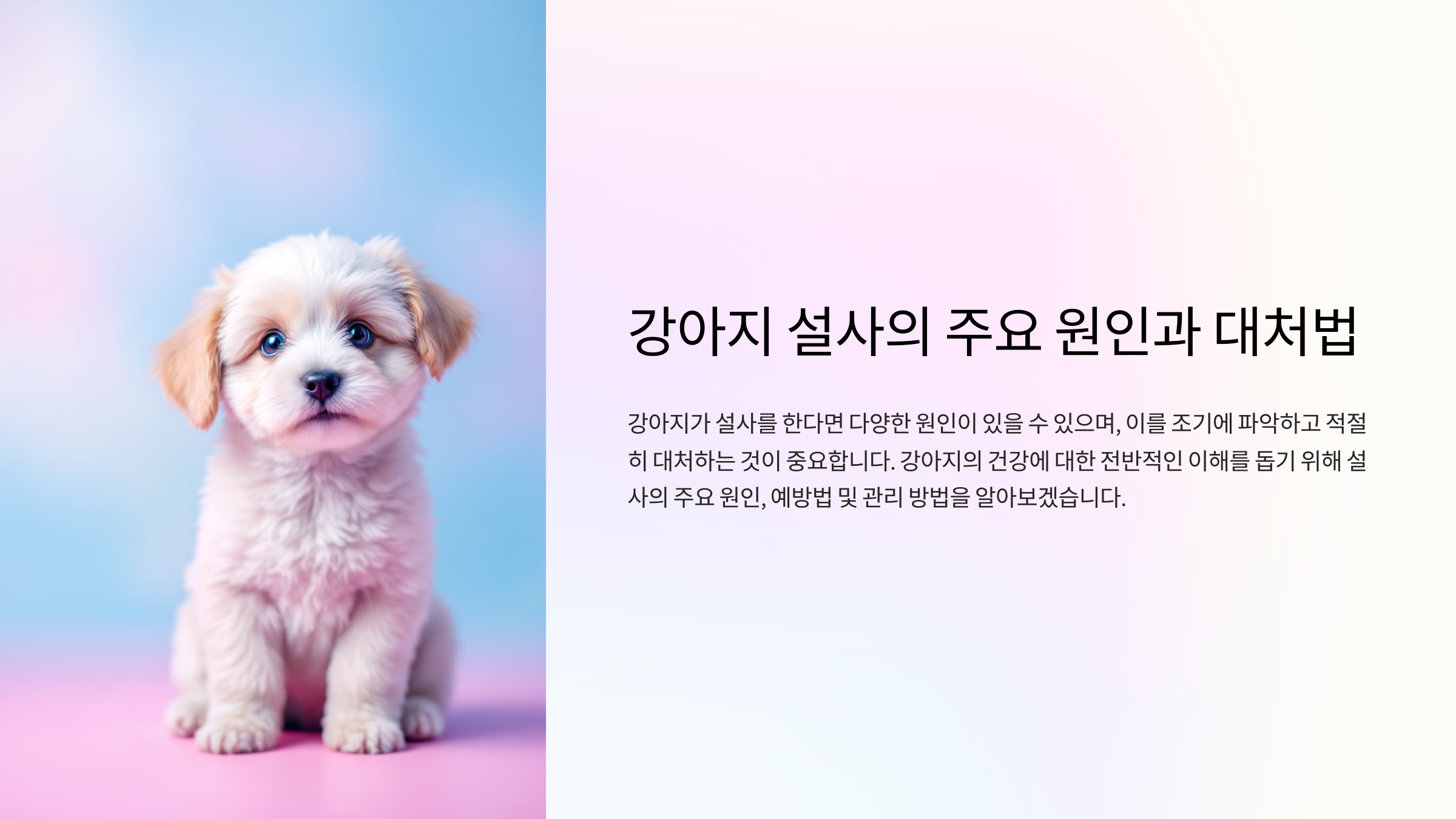 강아지의 건강을 관리하는 데 있어 설사는 가장 흔히 겪을 수 있는 문제 중 하나입니다. 설사는 강아지의 신체적 이상이나 환경적 요인에 의해 발생할 수 있으며, 이는 강아지의 건강과 삶의 질에 영향을 미칠 수 있습니다. 이 글에서는 강아지 설사의 주요 원인과 예방법에 대해 자세히 알아보겠습니다.