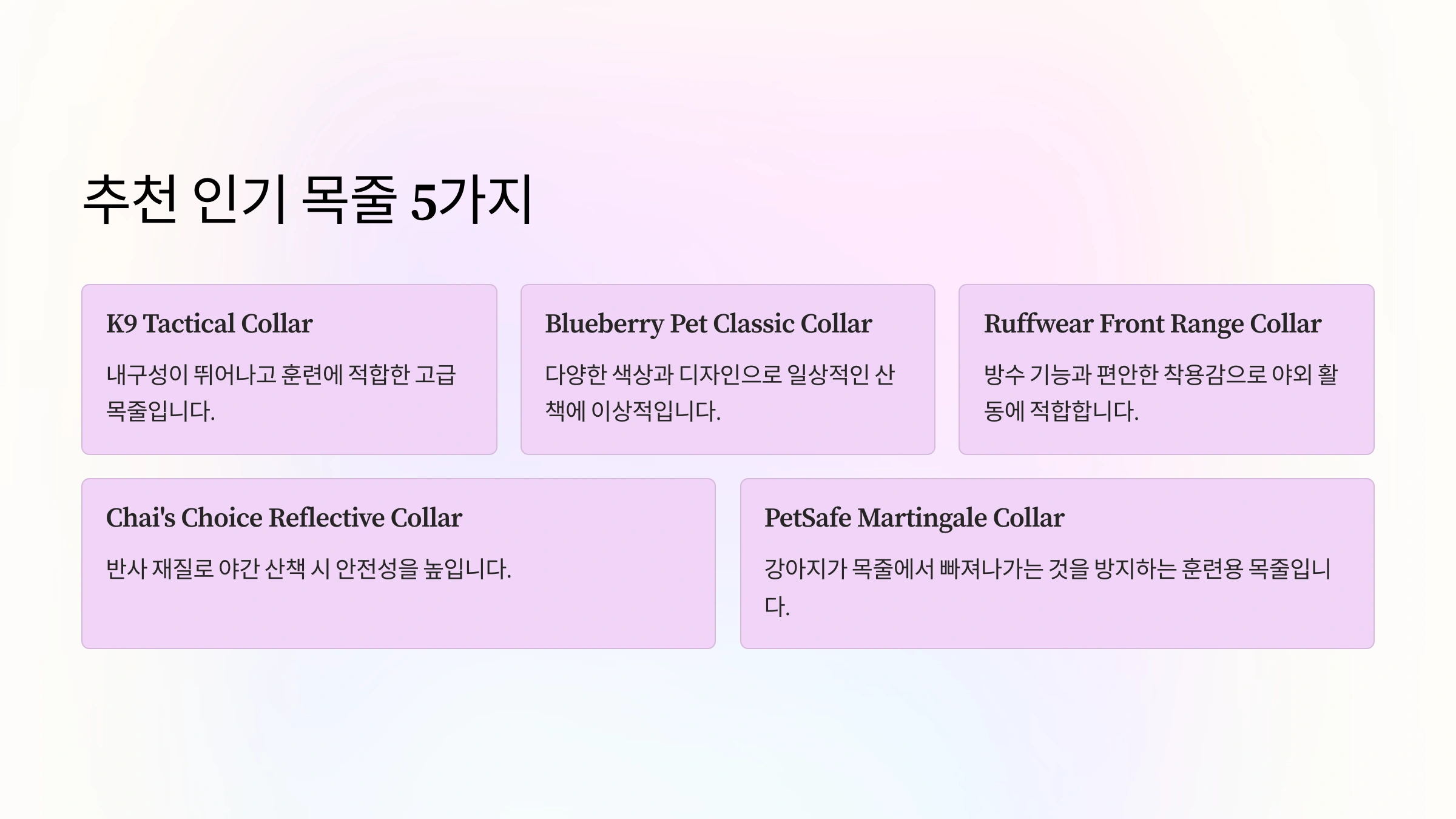 추천 인기 목줄 5가지