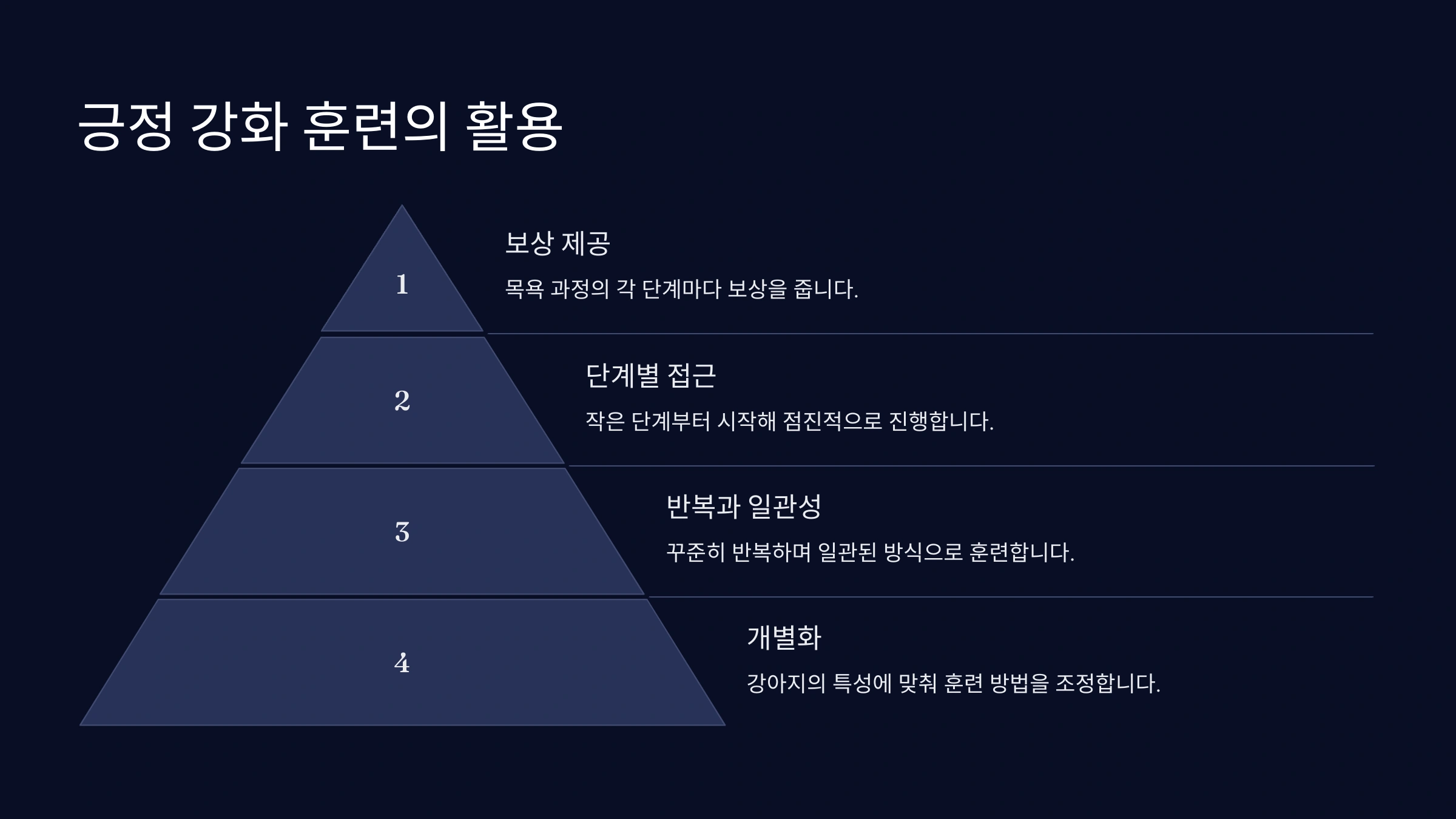 긍정 강화 훈련은 강아지의 행동을 변화시키는 데 매우 효과적이에요. 목욕을 시작하기 전부터 작은 단계에서부터 보상을 통해 긍정적인 경험을 쌓아보세요. 예를 들어, 욕조 근처에 간식을 놓아 강아지가 자발적으로 다가가게 유도해보세요.