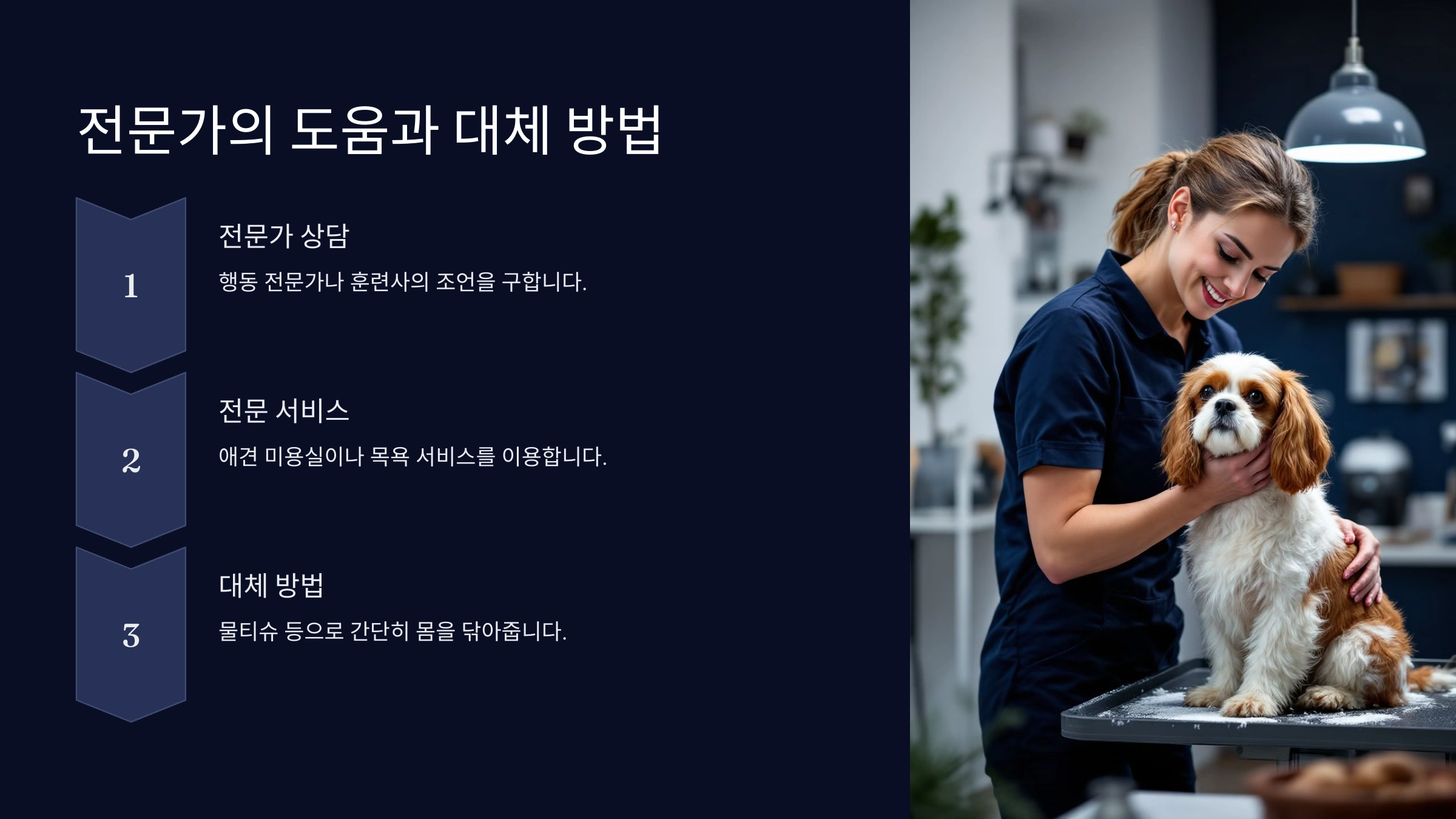 집에서 목욕이 너무 어렵다면, 애견 미용실이나 전문 목욕 서비스를 이용하는 것도 대안이 될 수 있어요. 이곳의 전문가는 강아지의 행동을 이해하고, 스트레스를 최소화하며 목욕을 진행할 수 있답니다.