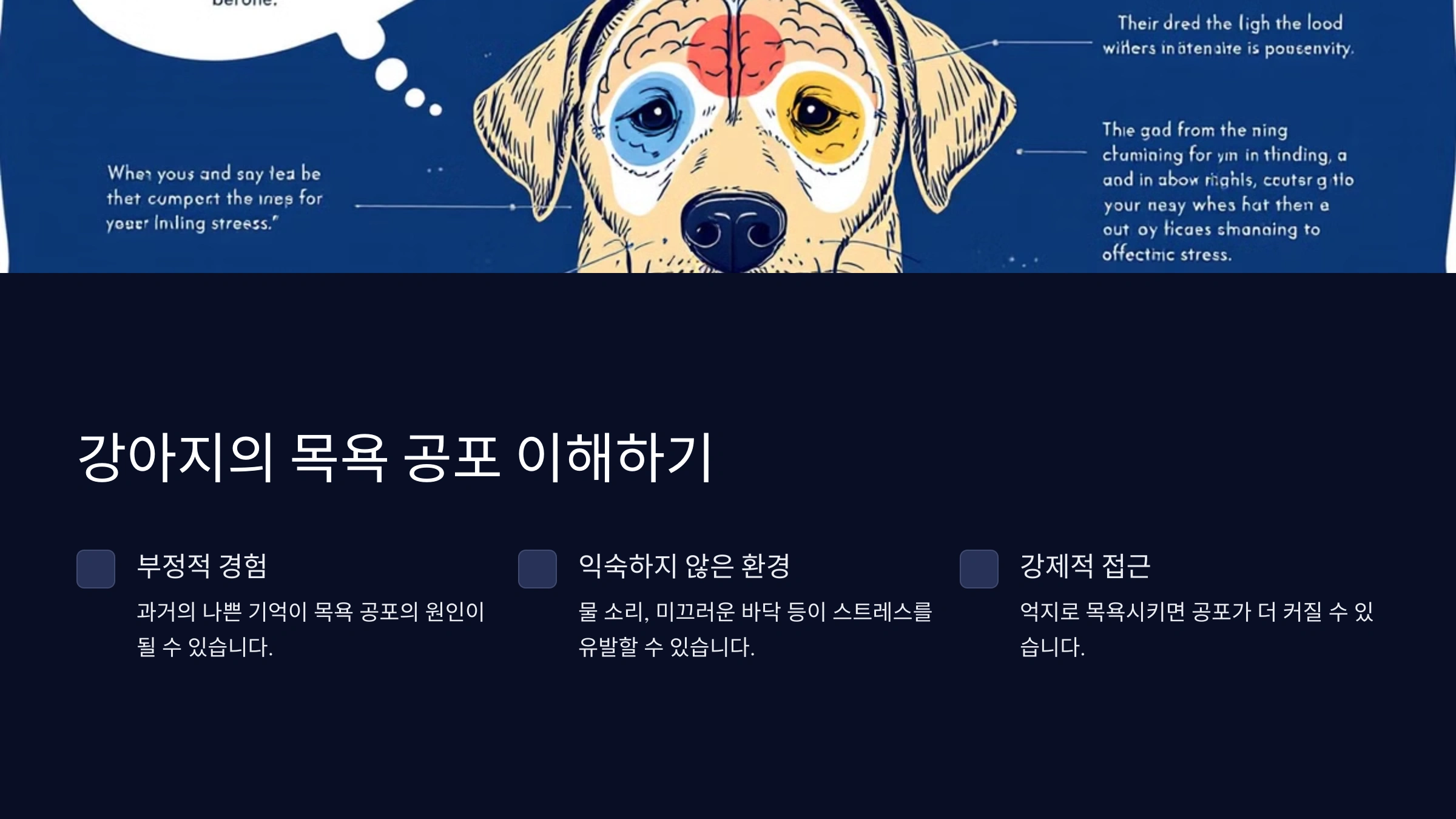 제가 생각했을 때, 강아지가 물을 두려워하지 않도록 하려면 목욕을 '즐거운 시간'으로 만들어주는 것이 중요하다고 봐요. 강아지에게 목욕이 스트레스가 아닌 긍정적인 경험으로 바뀌면, 점점 물에 대한 공포가 줄어들게 될 거예요.