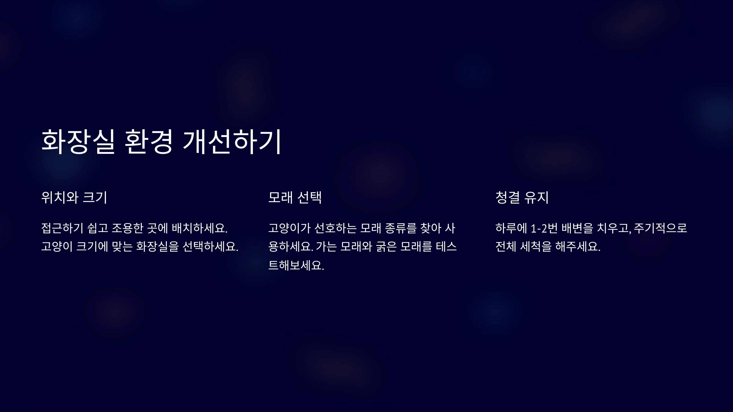 Q1. 고양이가 특정 장소에만 배변을 고집해요. 어떻게 해야 하나요?
