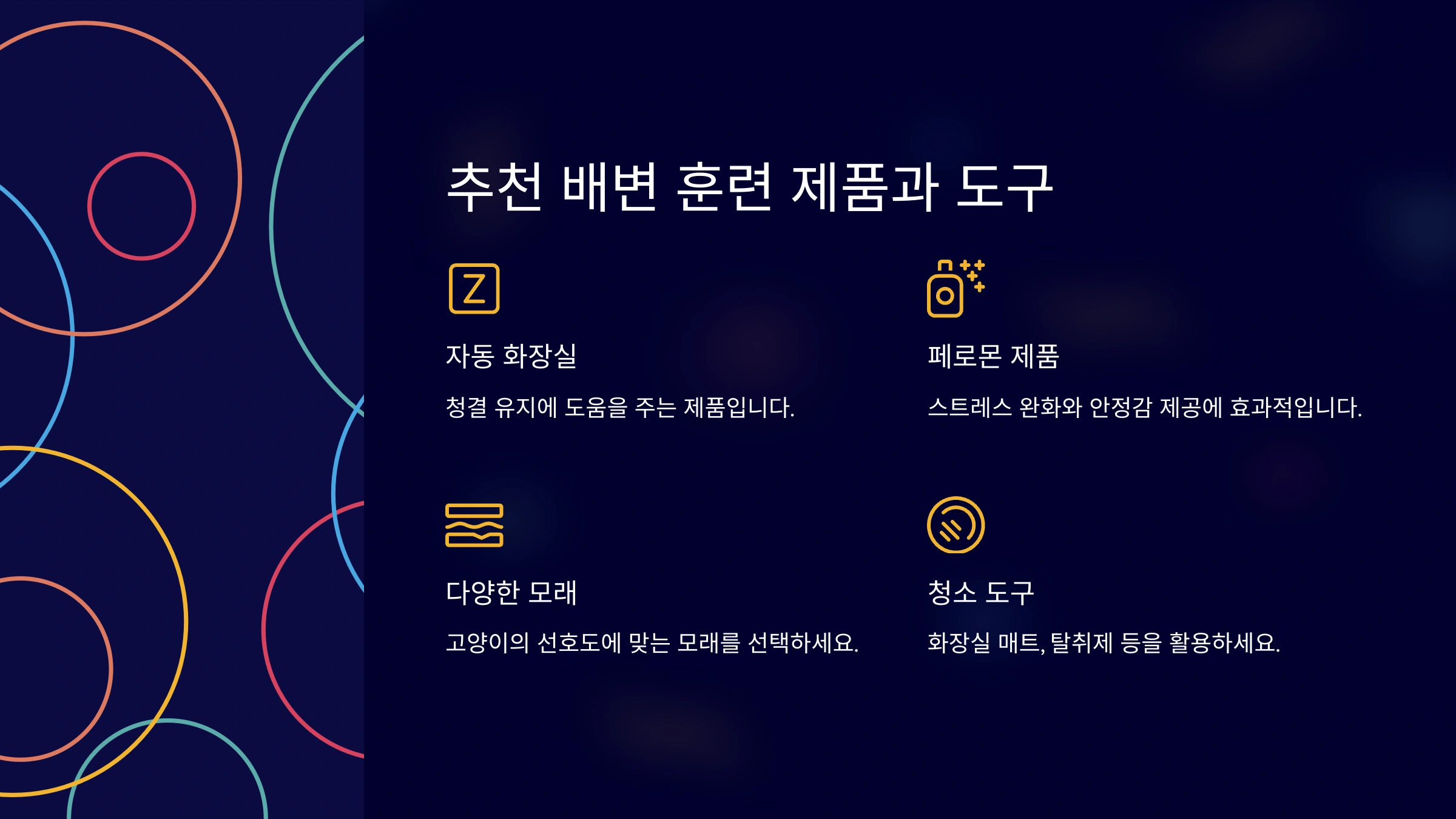 고양이의 화장실 문제를 해결하는 데 도움을 줄 수 있는 다양한 제품과 도구가 있어요. 예를 들어, 자동 화장실은 고양이가 깨끗한 환경에서 배변할 수 있도록 도와주는 훌륭한 선택이에요. 청결에 민감한 고양이들에게 특히 효과적이에요.