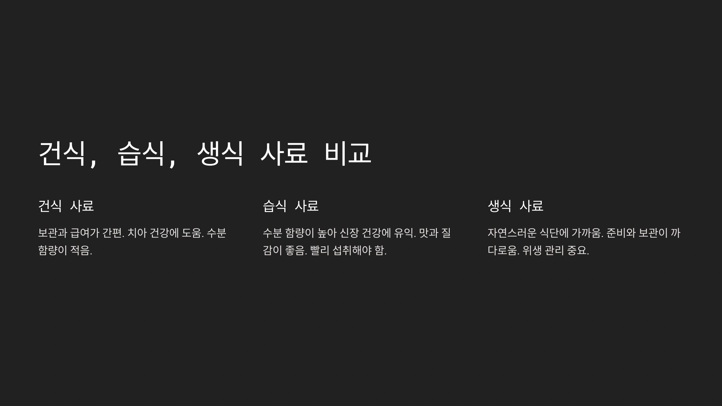 건식, 습식, 생식 사료 비교
