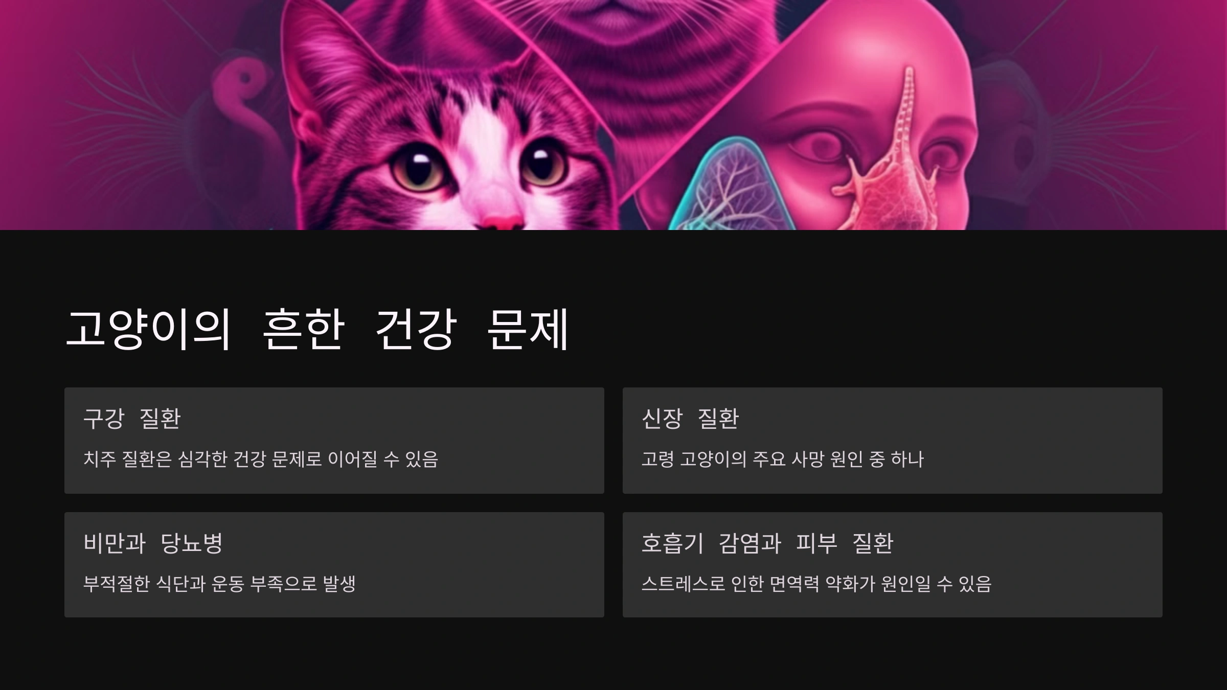 암도 고양이에서 드물지 않은 질환이에요. 특정 품종은 암에 걸릴 확률이 높기 때문에, 정기적인 검진을 통해 조기 발견하는 것이 중요하답니다.