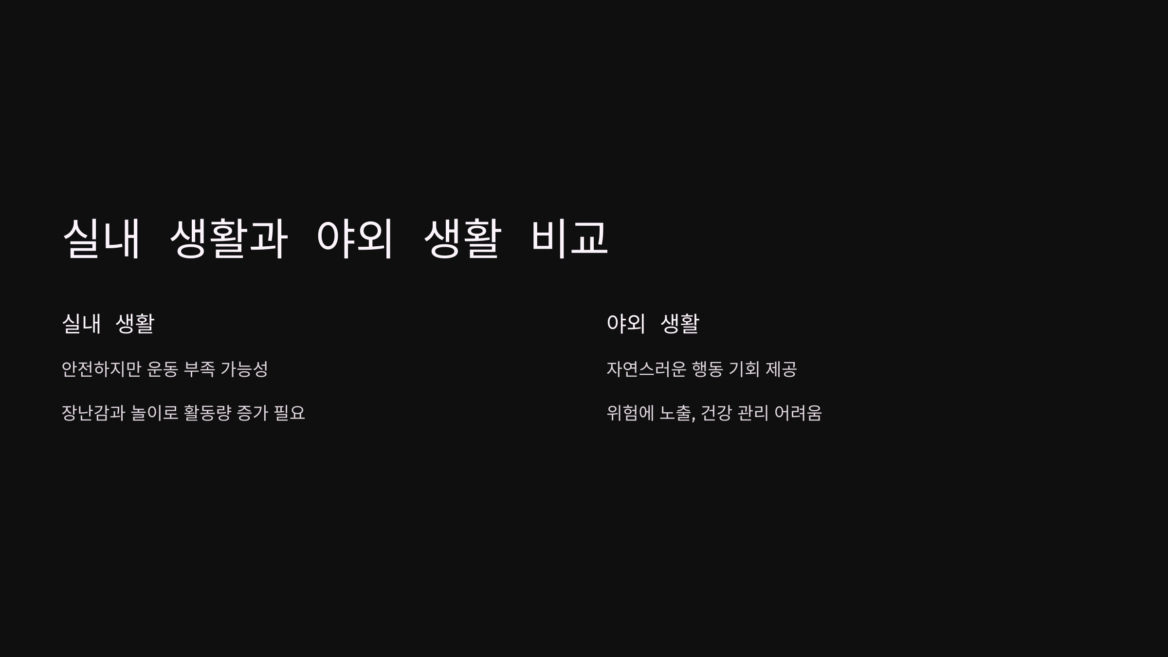 실내 생활과 야외 생활 비교