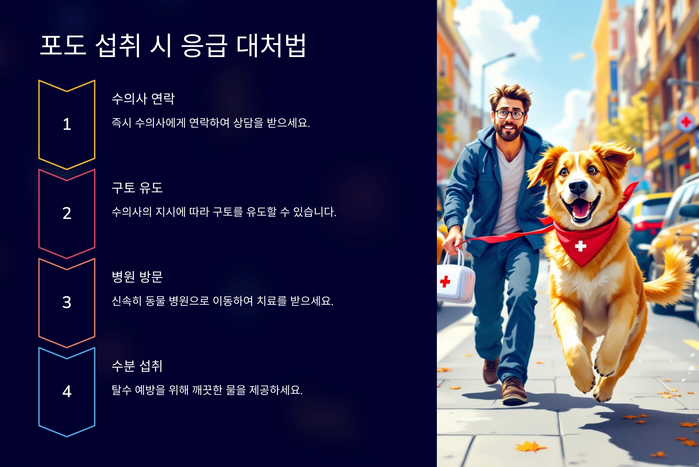 강아지가 포도를 먹었다면 다음과 같은 응급 대처법을 따라야 해요:
