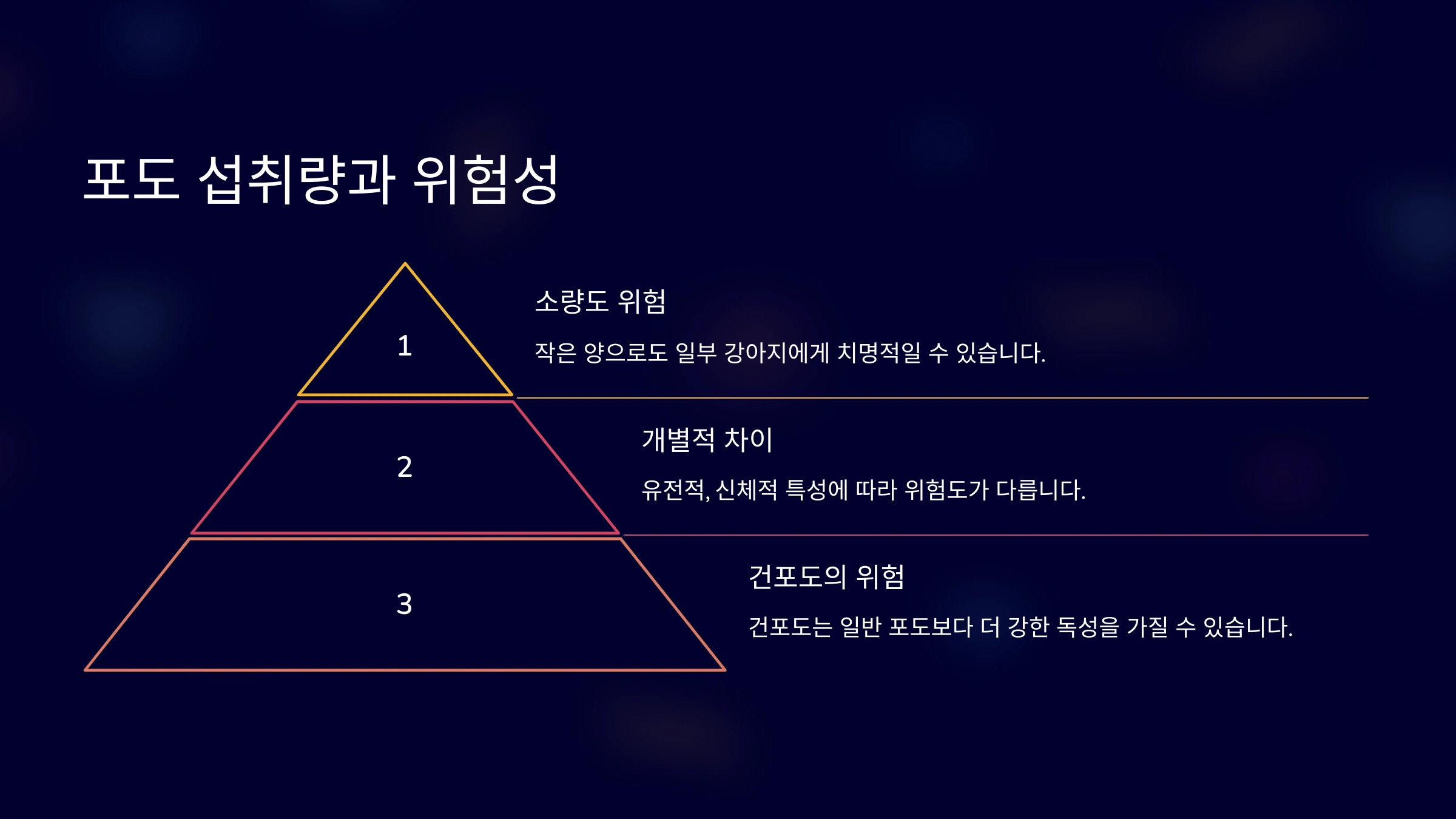 포도나 건포도의 섭취량과 강아지에게 미치는 독성 정도는 매우 다양해요. 심지어 소량이라도 민감한 강아지에게는 치명적일 수 있답니다. 예를 들어, 체중 10kg의 강아지가 건포도 몇 개만 먹어도 급성 신부전을 일으킬 수 있어요.