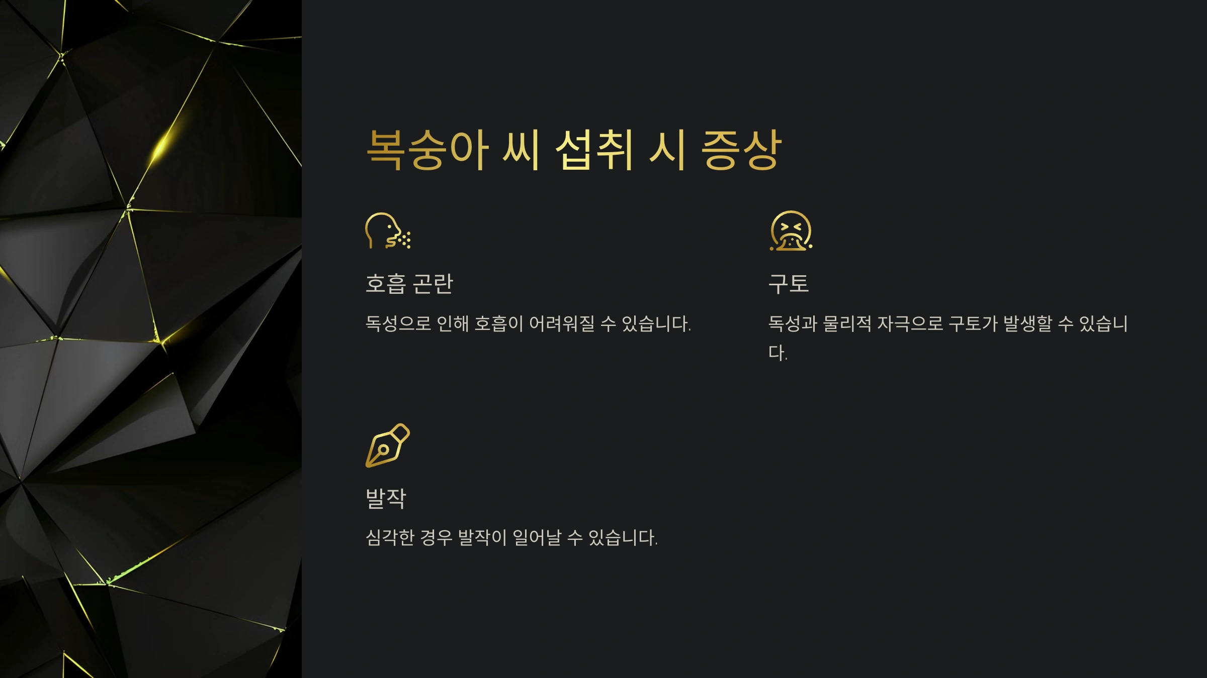 이 독성 물질은 강아지의 호흡기, 심혈관계, 그리고 신경계에 영향을 줄 수 있어요. 섭취 후 빠르게 증상이 나타날 수 있으니 주의 깊게 관찰해야 해요.