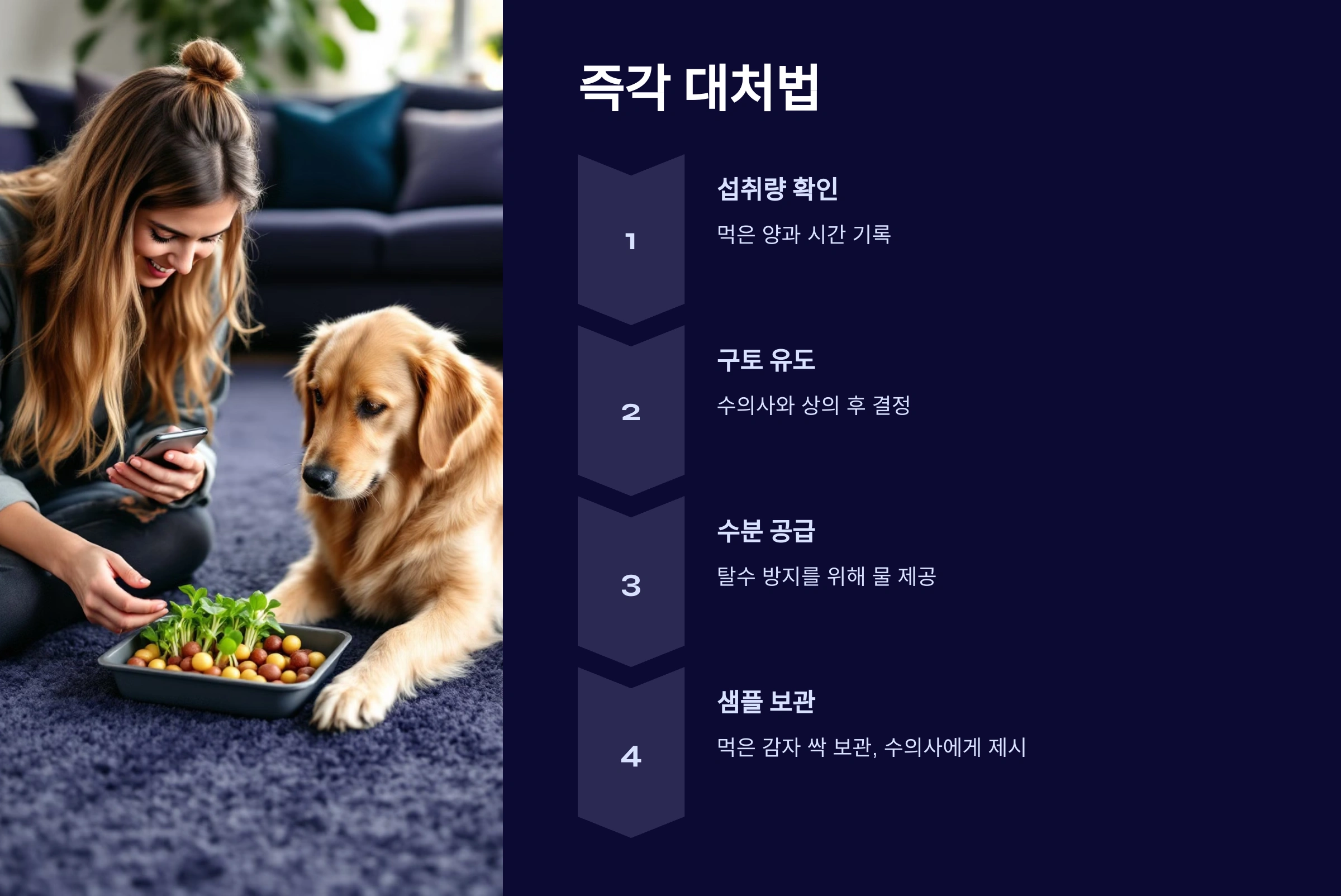 강아지가 감자 싹을 먹고 구토를 하기 전이라면, 독성 물질을 최대한 빨리 제거하기 위해 수의사와 상의하여 구토를 유도할 수 있어요. 하지만 수의사 지시 없이 억지로 구토를 유도하면 오히려 더 위험할 수 있으니 주의해야 해요.