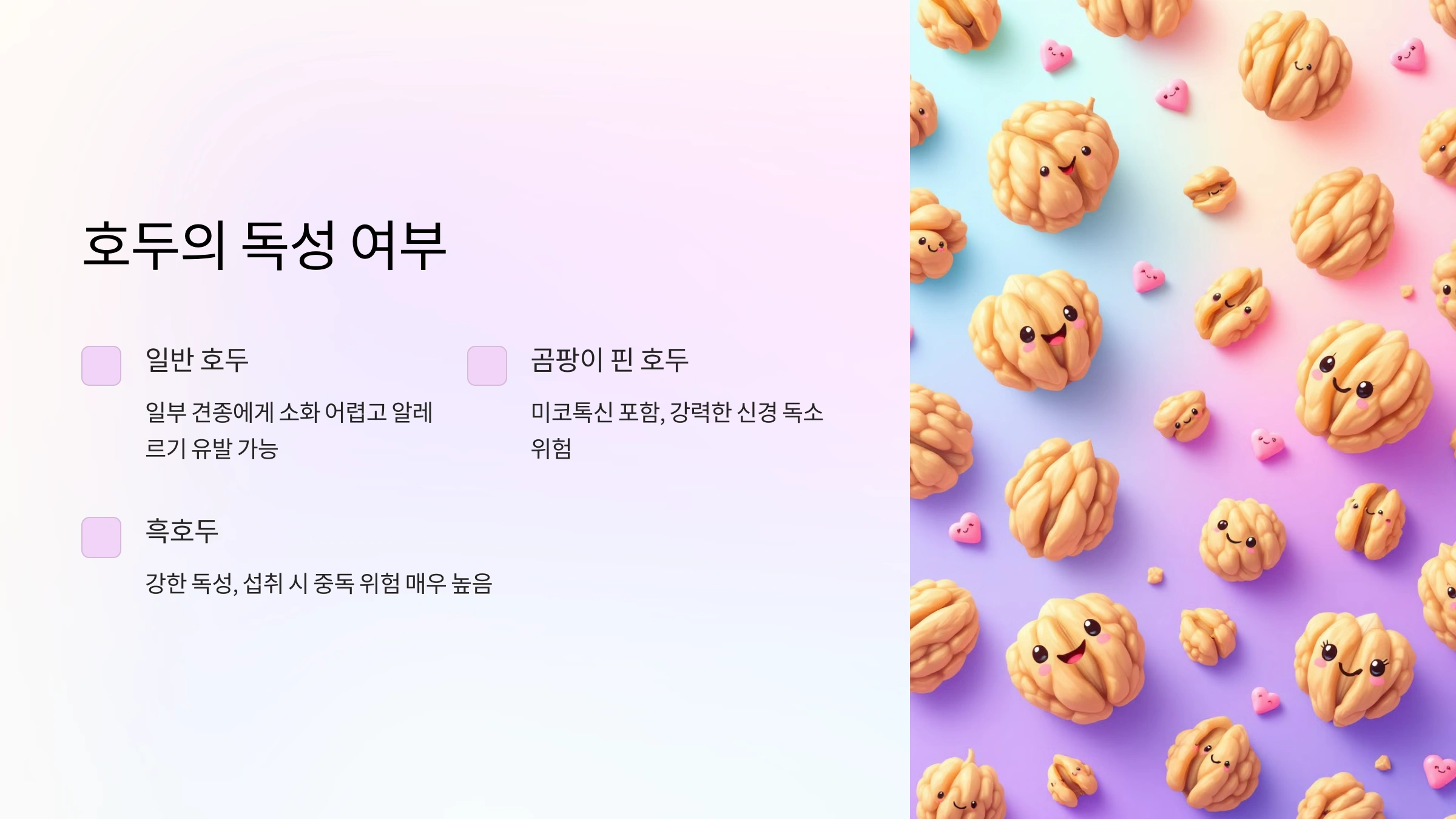 | 호두 종류 | 위험성 |