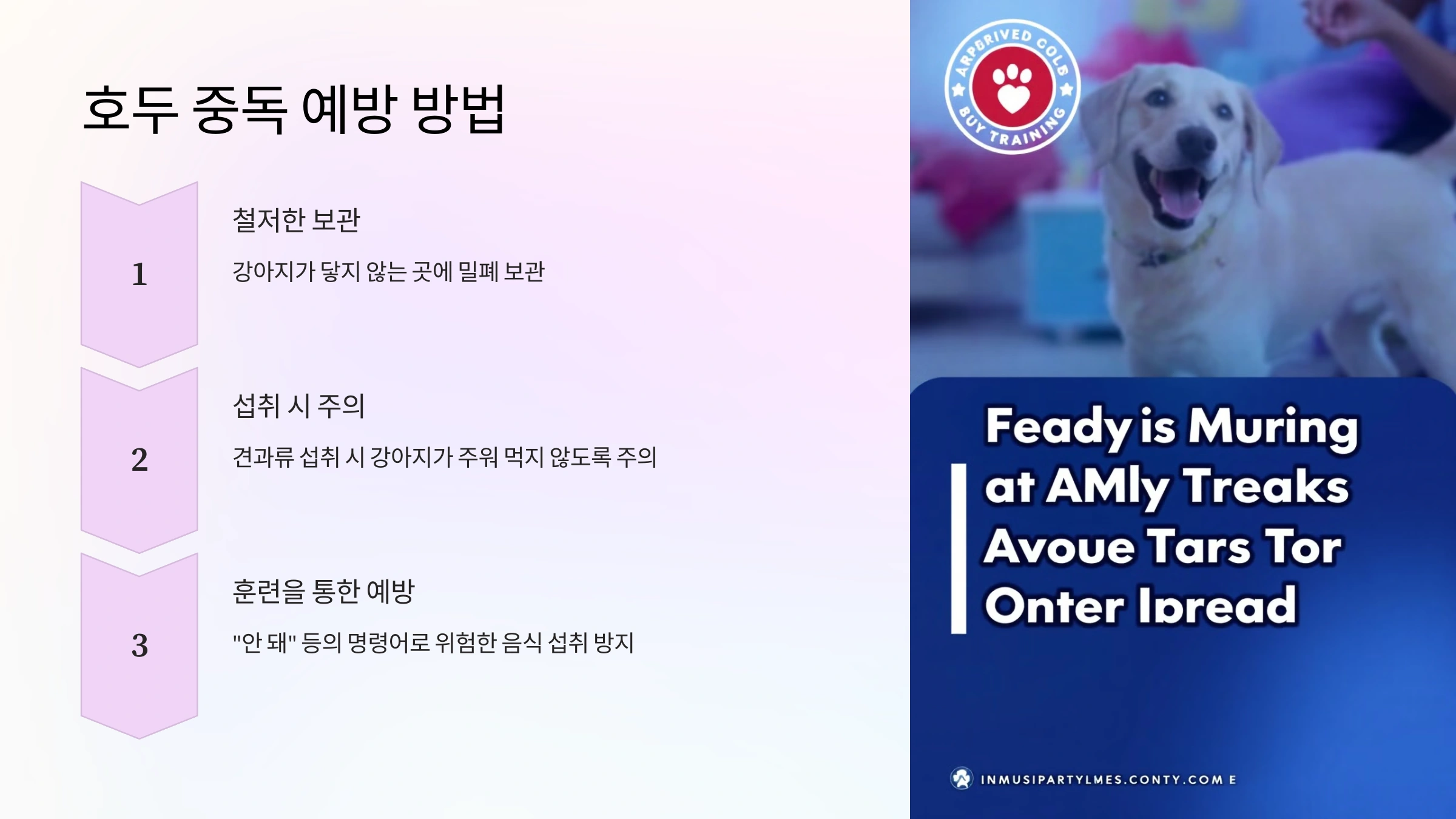 ✅ 훈련을 통한 예방: "안 돼"와 같은 명령어를 통해 위험한 음식을 먹지 않도록 교육해 주세요.