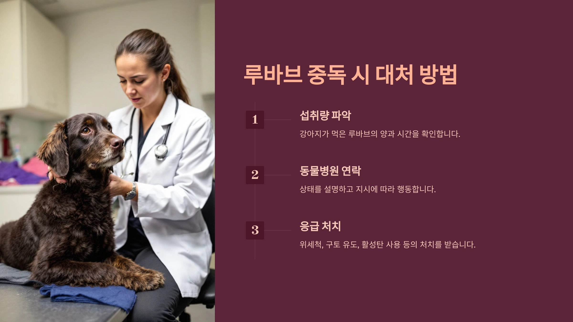 자가 치료를 시도하기보다는 전문가의 도움을 받는 것이 가장 안전해요. 특히 루바브 독성은 빠르게 진행될 수 있기 때문에 조기에 병원에 데려가는 것이 강아지의 건강을 지키는 데 핵심이에요.