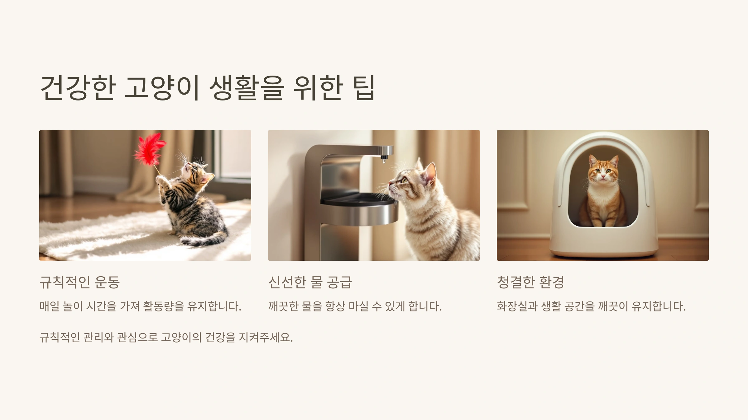 구토를 예방하려면 올바른 식습관과 건강 관리를 실천하는 것이 중요해요. 아래 방법들을 참고해서 고양이가 건강하게 생활할 수 있도록 도와주세요!