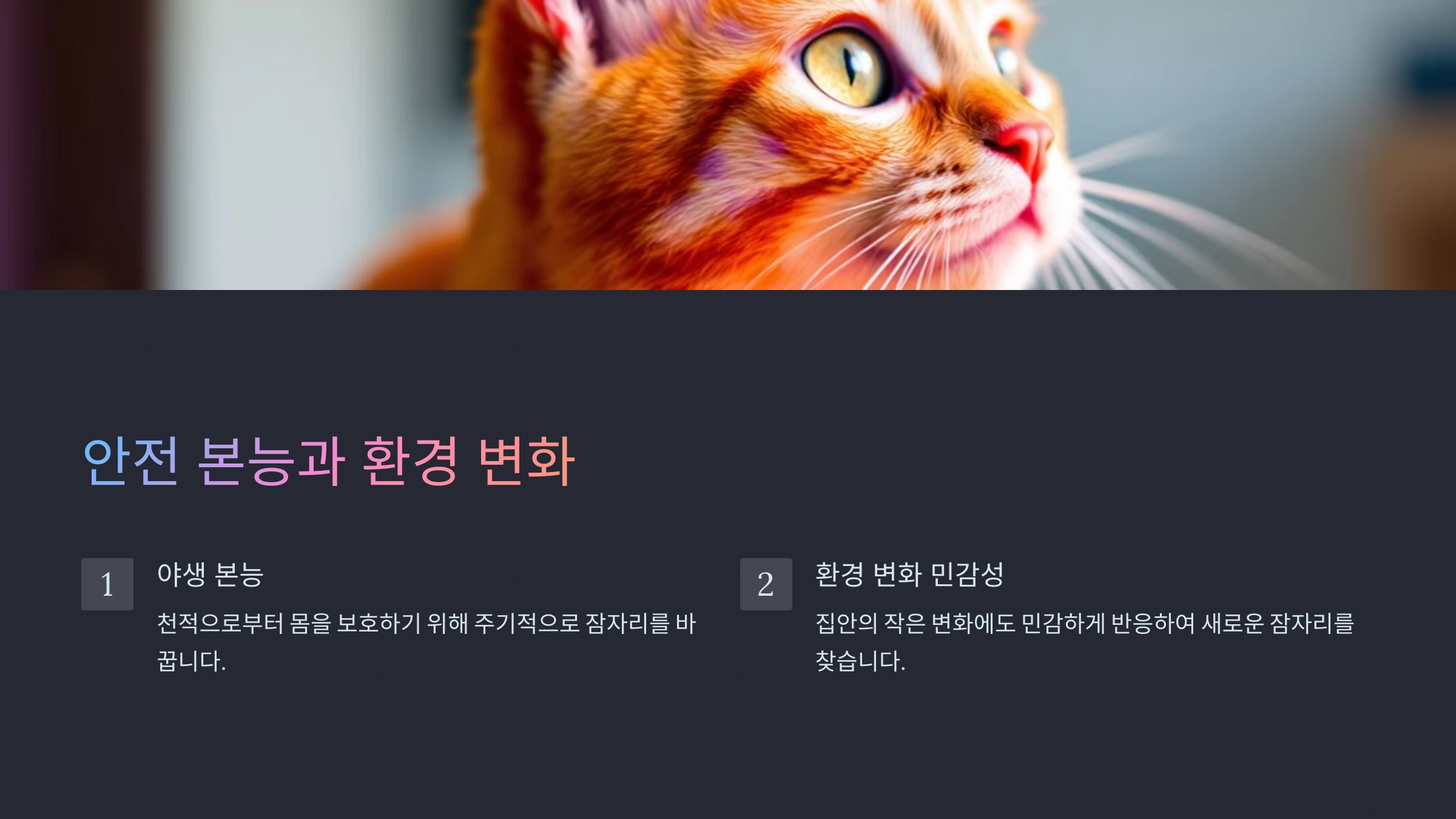 이제 본격적으로 고양이가 자주 잠자리를 바꾸는 이유를 하나씩 살펴볼까요? 😊