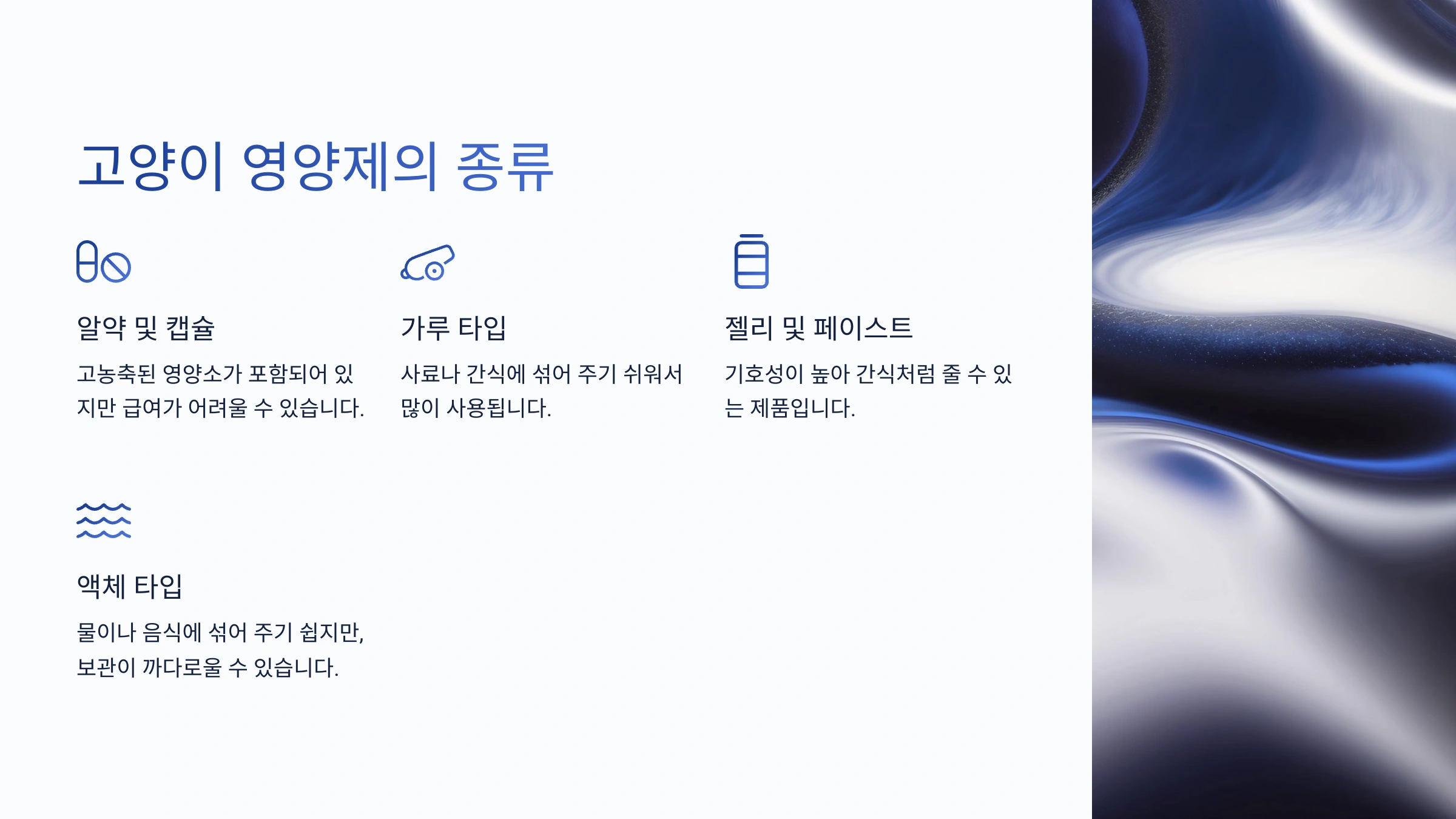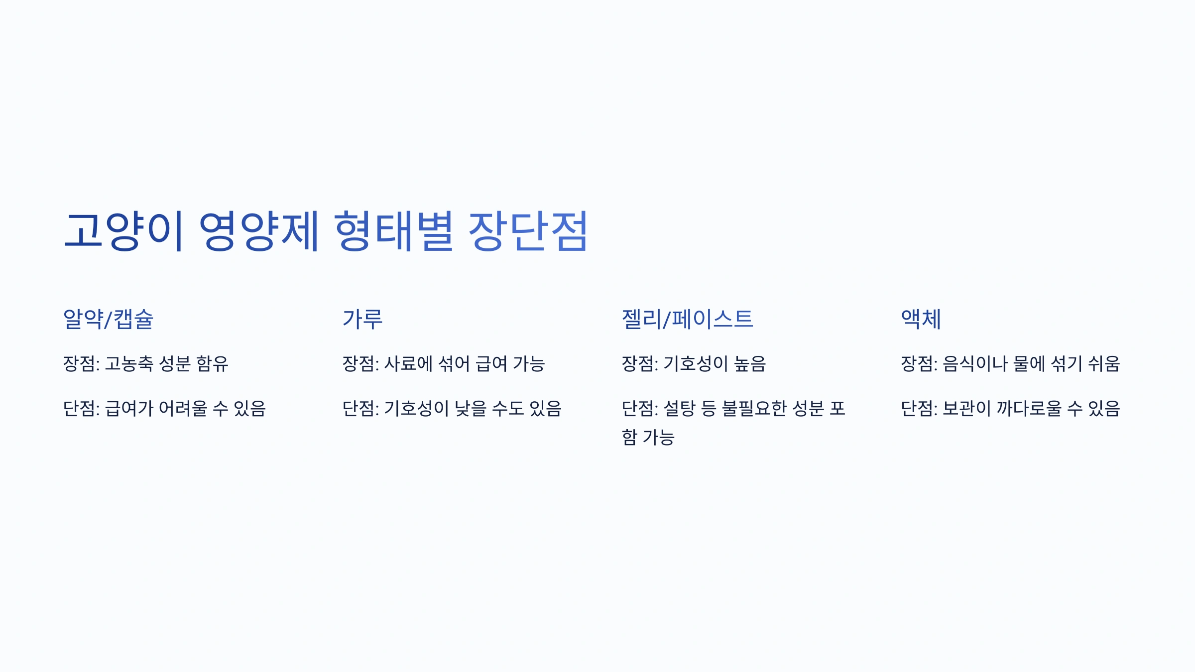 🔍 고양이 영양제 형태별 장단점