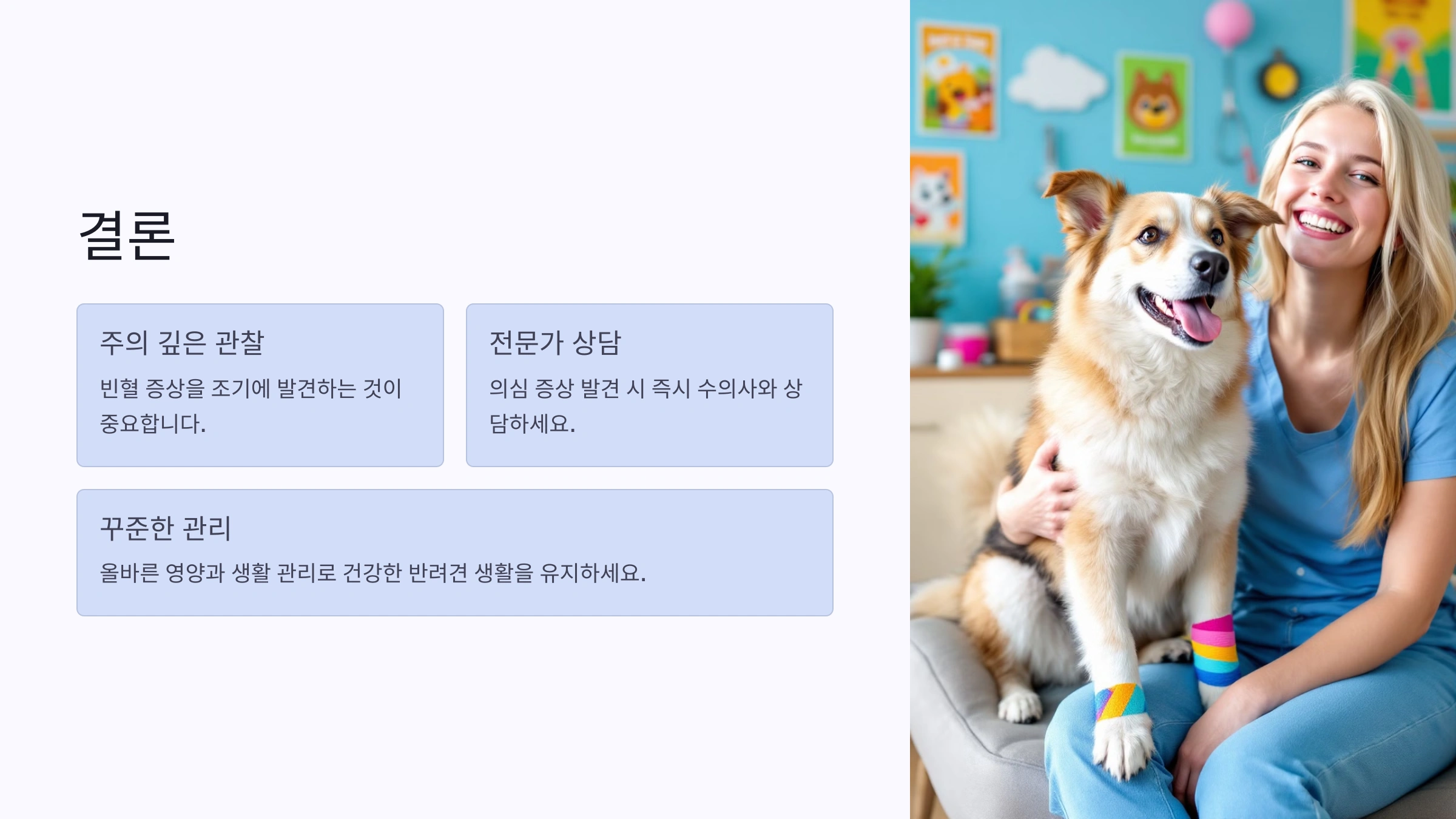 강아지 빈혈은 조기에 발견하고 관리하면 충분히 개선될 수 있어요! 보호자의 관심과 꾸준한 케어가 가장 중요한 요소예요. 🐶💖