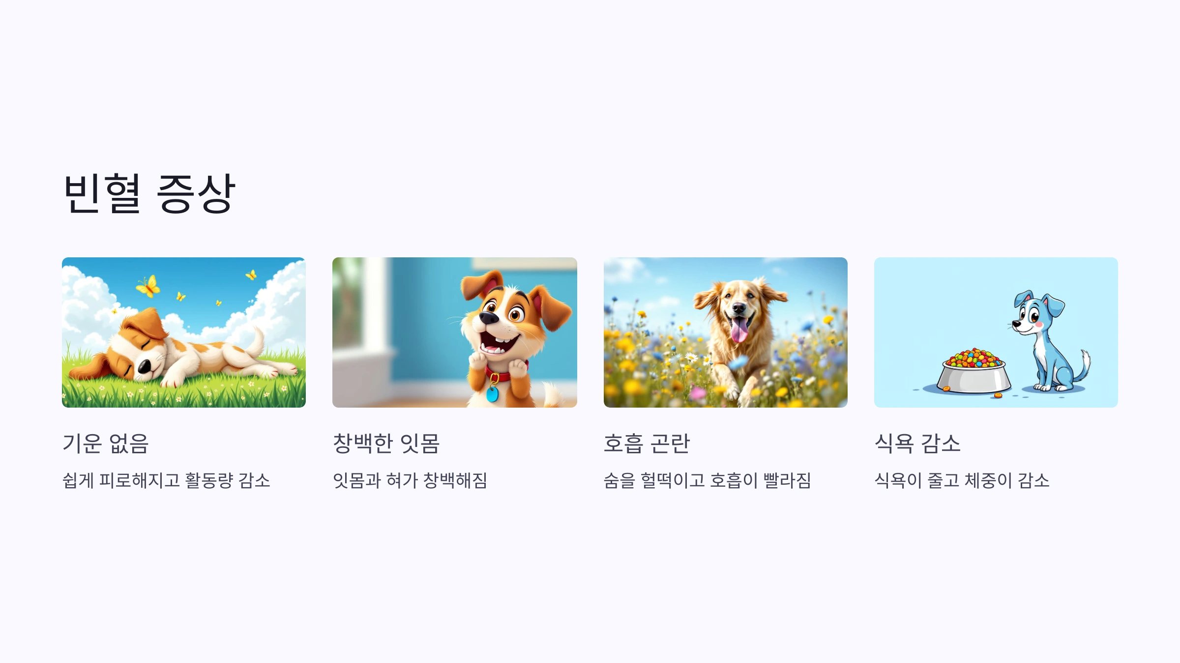 강아지 빈혈이 심해지면 눈에 띄는 여러 증상이 나타나요. 보호자가 빠르게 알아차리고 대응하는 것이 중요해요.