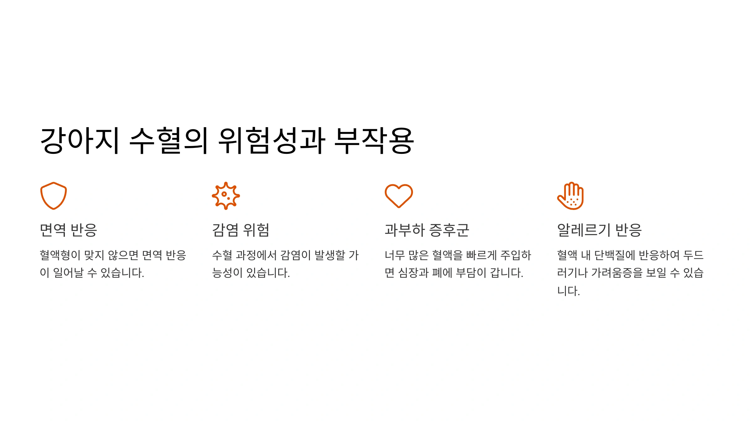 강아지 수혈은 생명을 살리는 중요한 과정이지만, 부작용이 발생할 수도 있어요. 주요 위험 요소를 알아볼게요.
