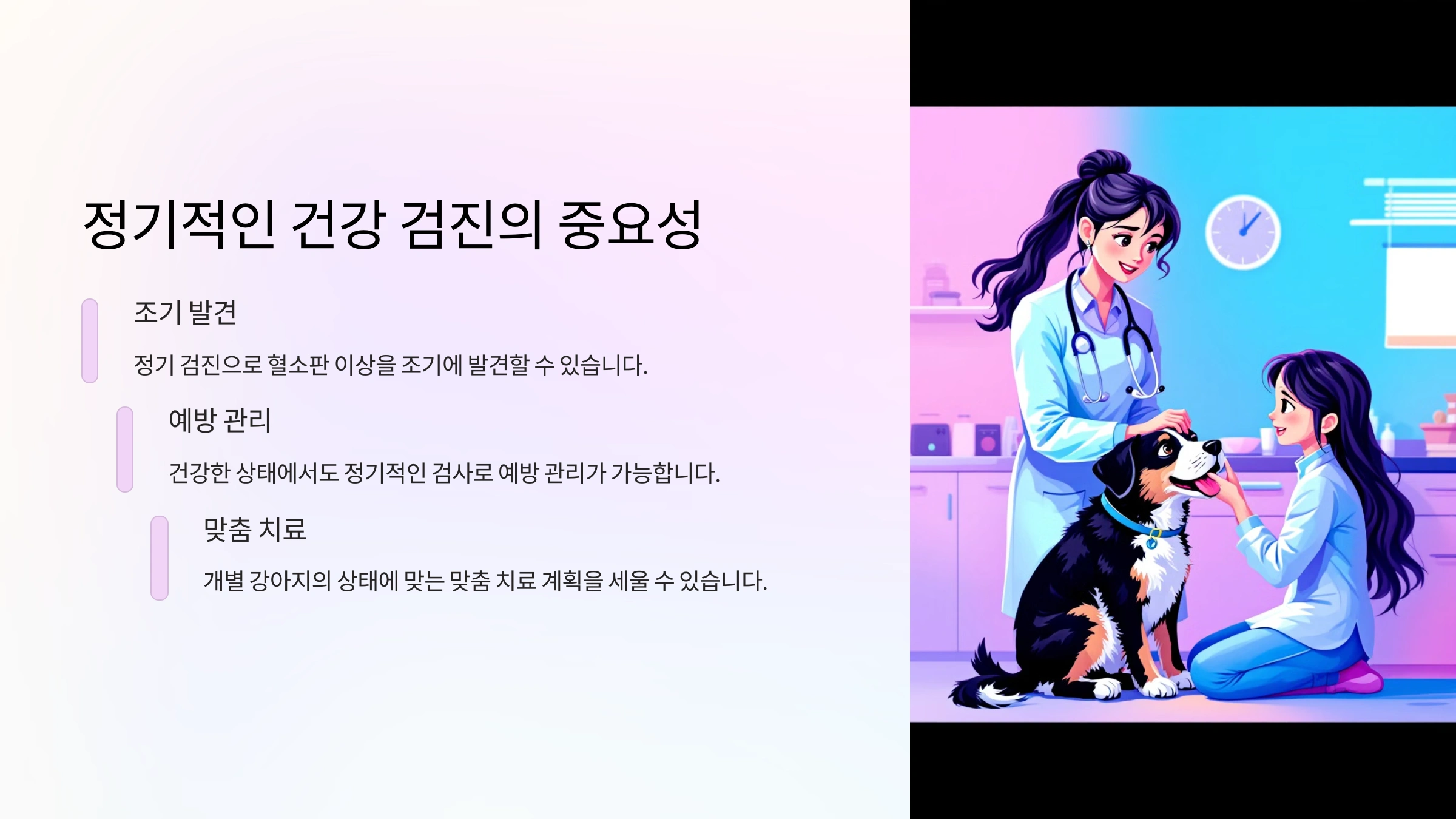 - 스트레스 관리 (반려견의 정서적 안정 중요!)
