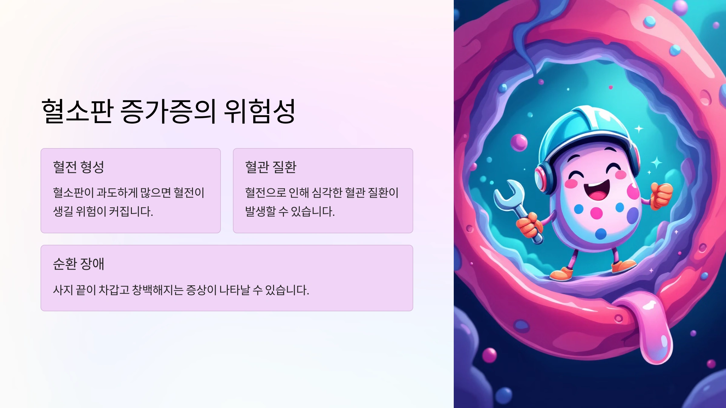 혈소판 증가증은 시간이 지나면서 점점 위험해질 수 있기 때문에 조기에 원인을 찾아 치료하는 것이 중요해요. 🏥