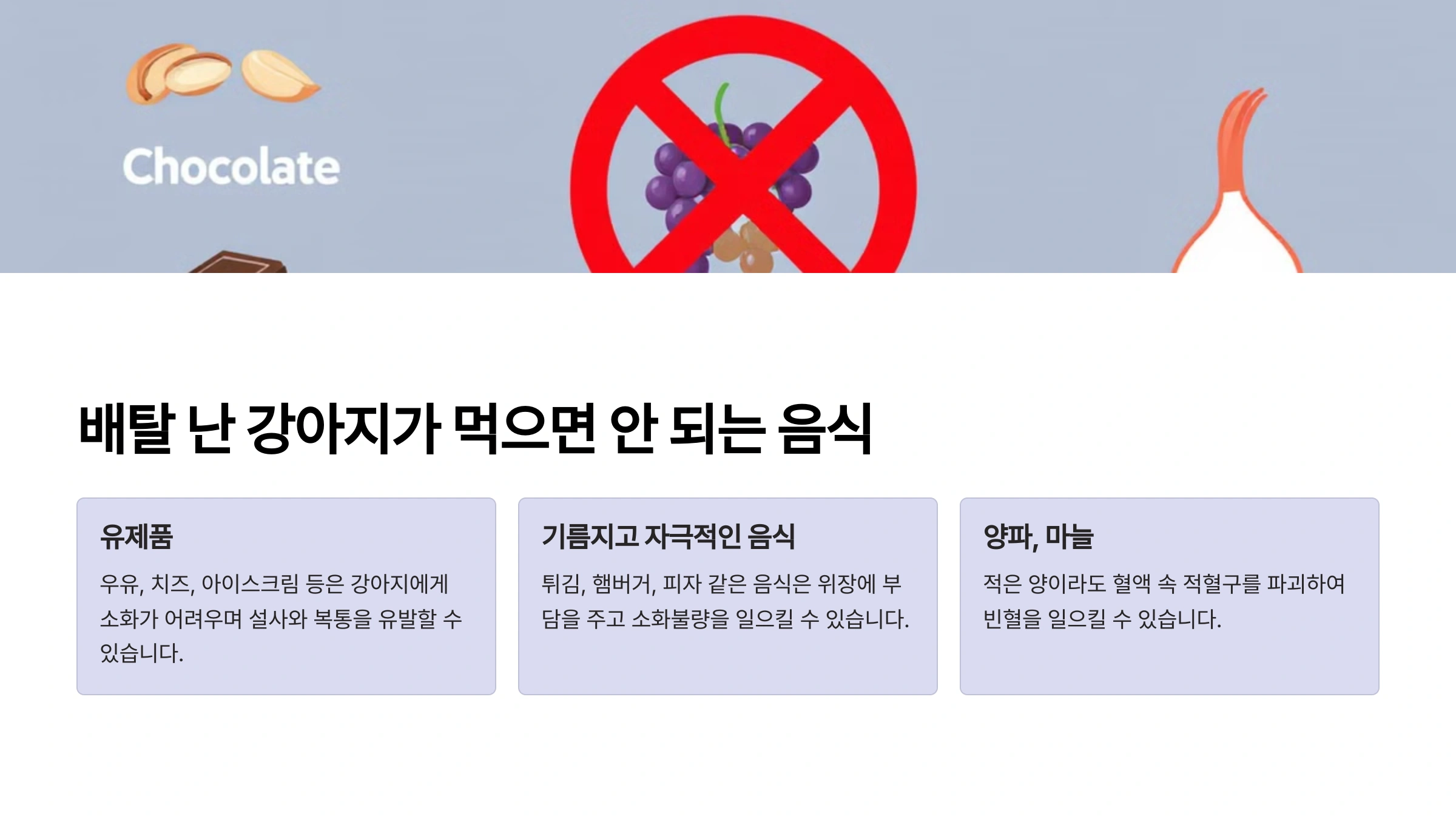 🚫 배탈 난 강아지가 먹으면 안 되는 음식