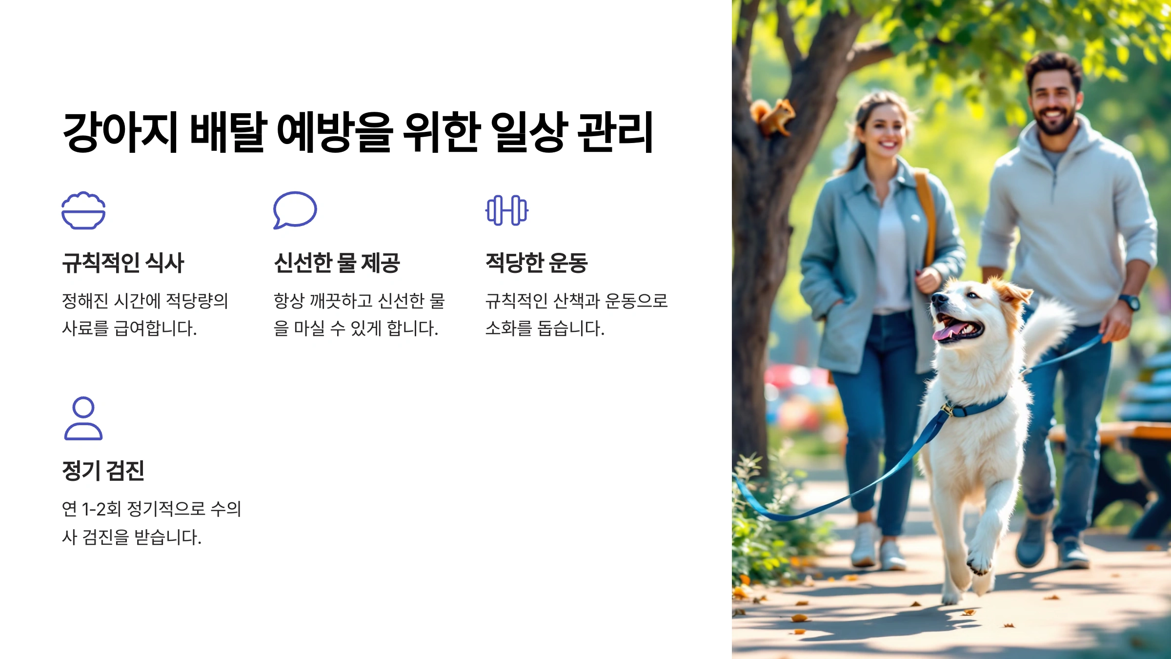 강아지가 건강하게 지낼 수 있도록 올바른 식단과 생활 습관을 유지하는 것이 중요해요! 🐶💕