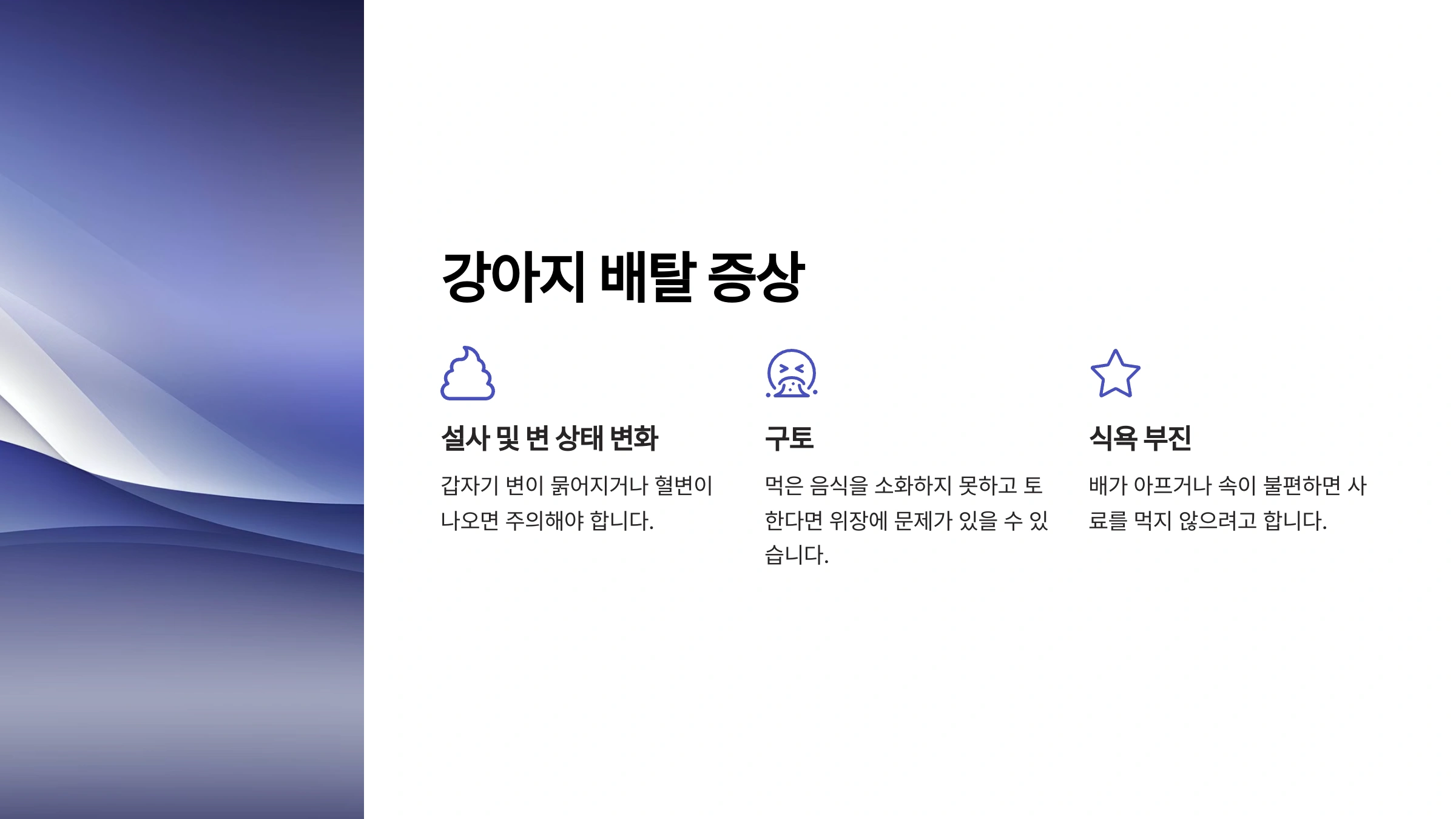 📢 다음 섹션에서는 강아지 배탈이 났을 때 대처법과 예방법을 알아볼게요!