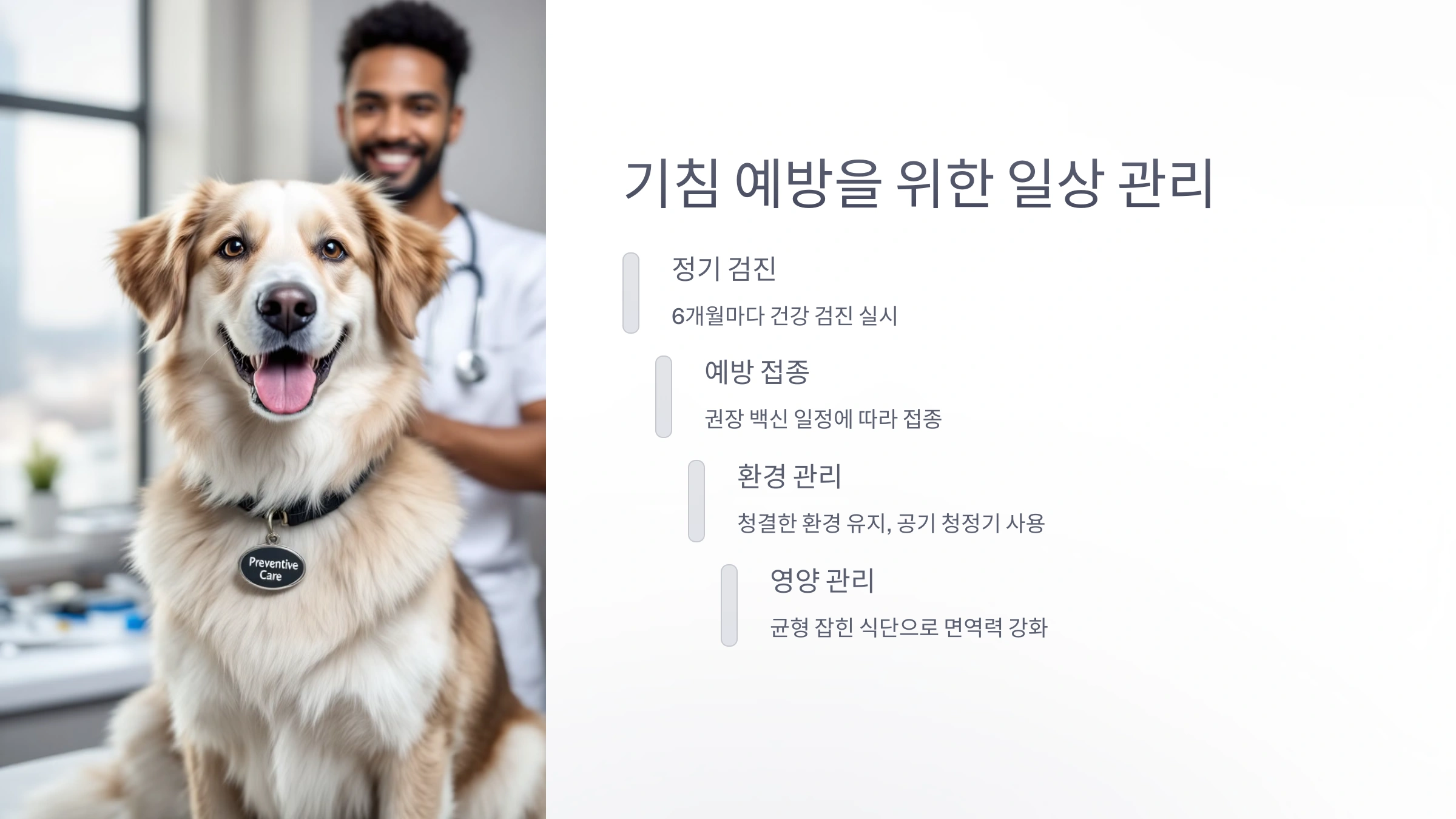 A4. 백신 접종, 심장사상충 예방약 투여, 깨끗한 환경 유지, 적절한 체중 관리 등이 기침 예방에 도움이 돼요.