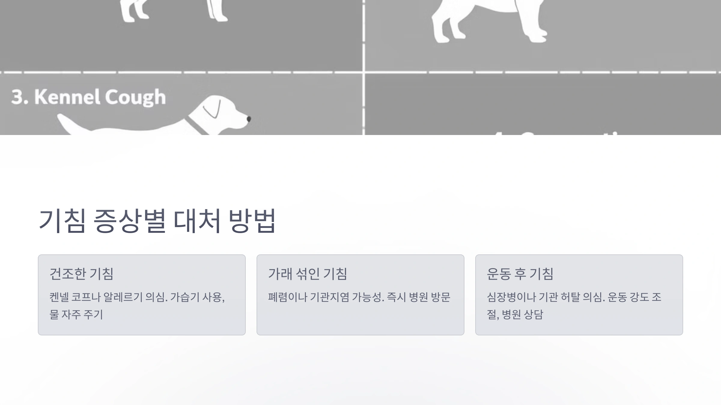 💡 만약 강아지가 기침을 심하게 하거나 기침이 오래 지속된다면 동물병원에서 정확한 진단을 받는 것이 좋아요!