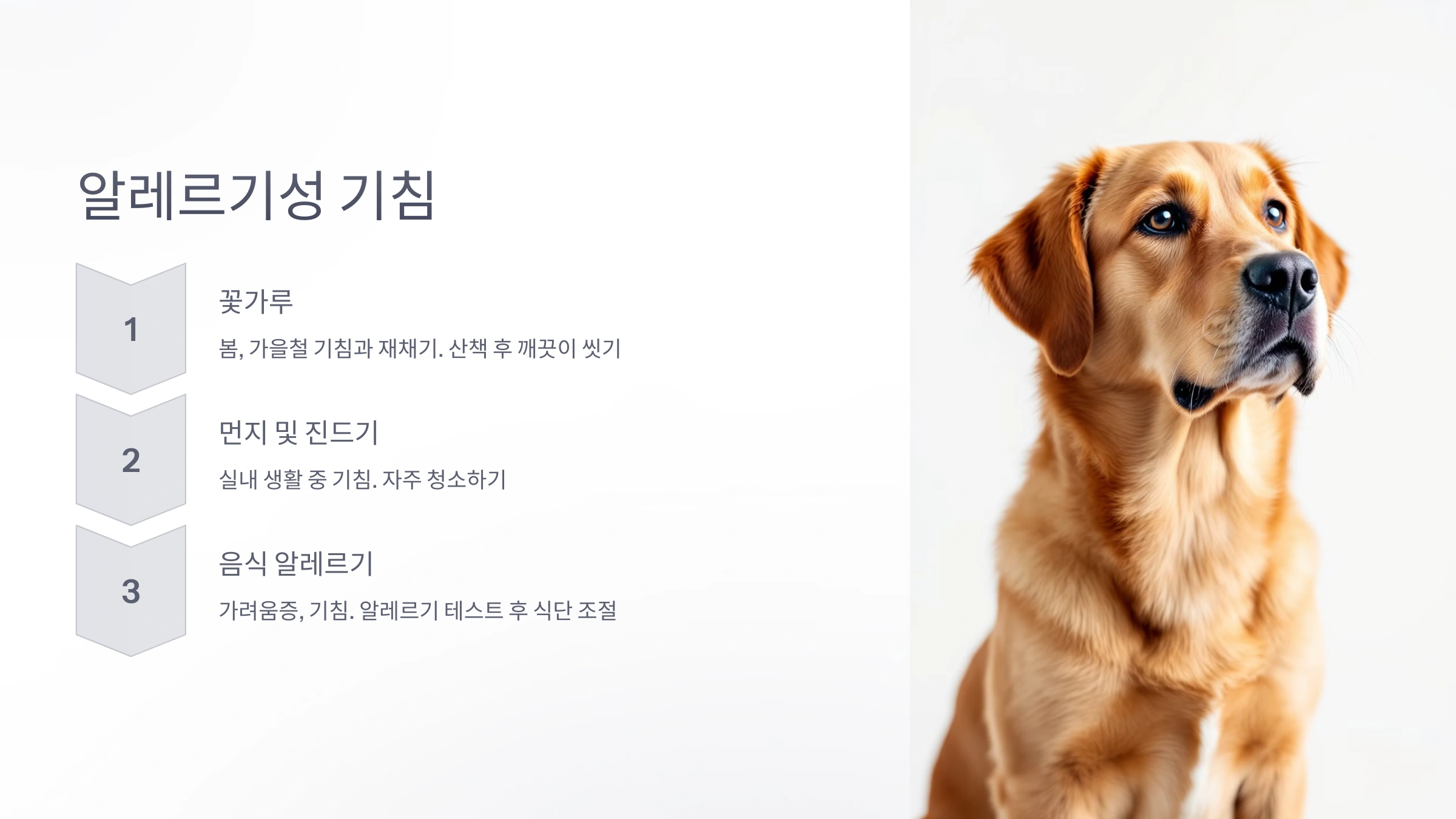 만약 강아지가 특정 계절이나 환경에서만 기침을 한다면 환경적인 원인을 찾아보고 관리하는 것이 중요해요. 병원에서 알레르기 검사를 통해 원인을 정확히 파악할 수도 있어요.