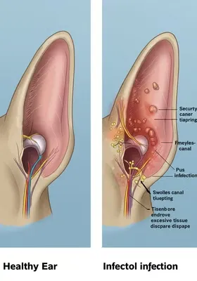 - 외이염: 귀냄새 심하고, 귀 안이 붉게 부음