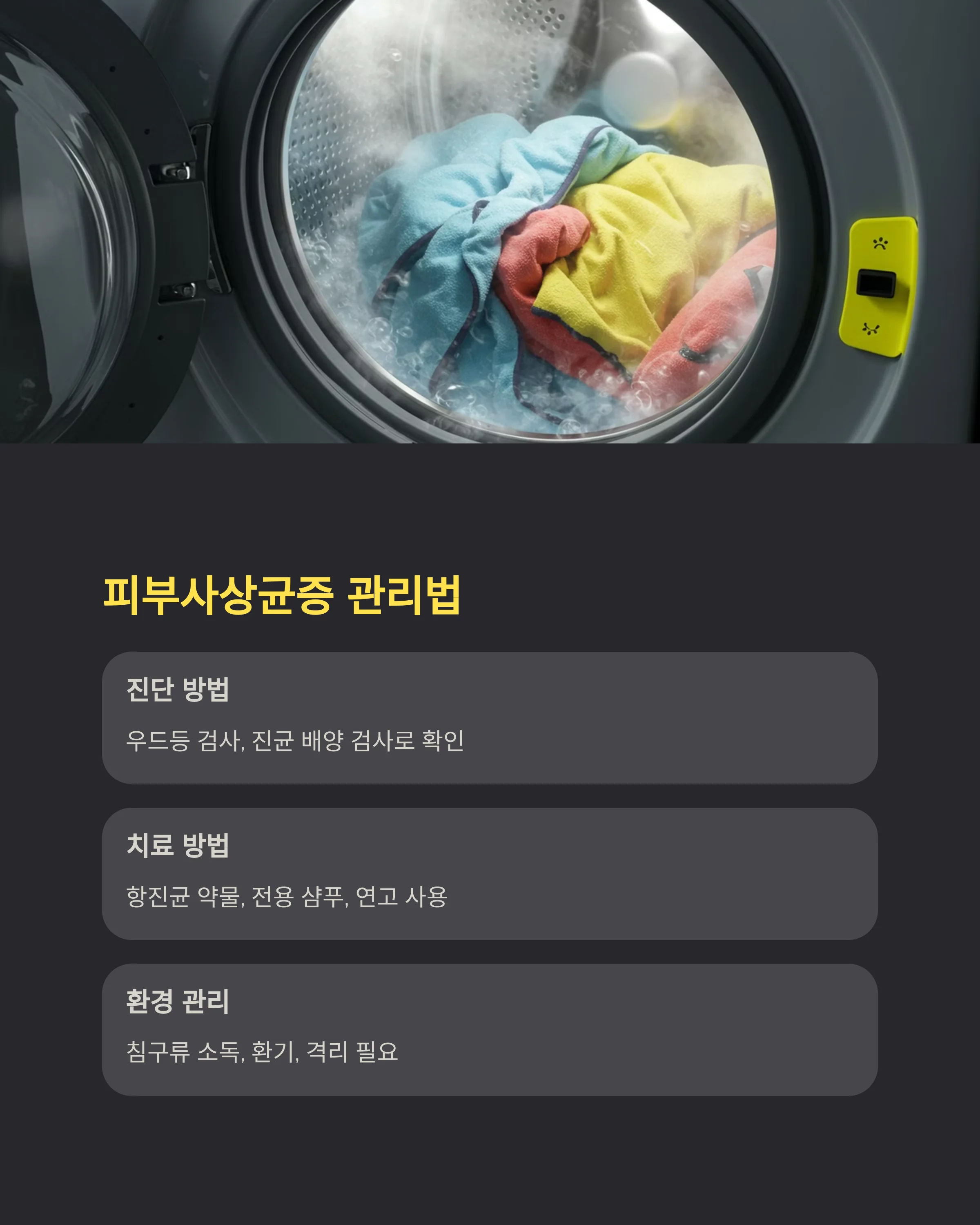 또한, 눈에 보이는 증상이 없다고 방심해서는 안 돼요. 특히 피부사상균증은 무증상 감염 상태로도 전파가 가능하기 때문에 정기적인 건강 검진이 필수예요!