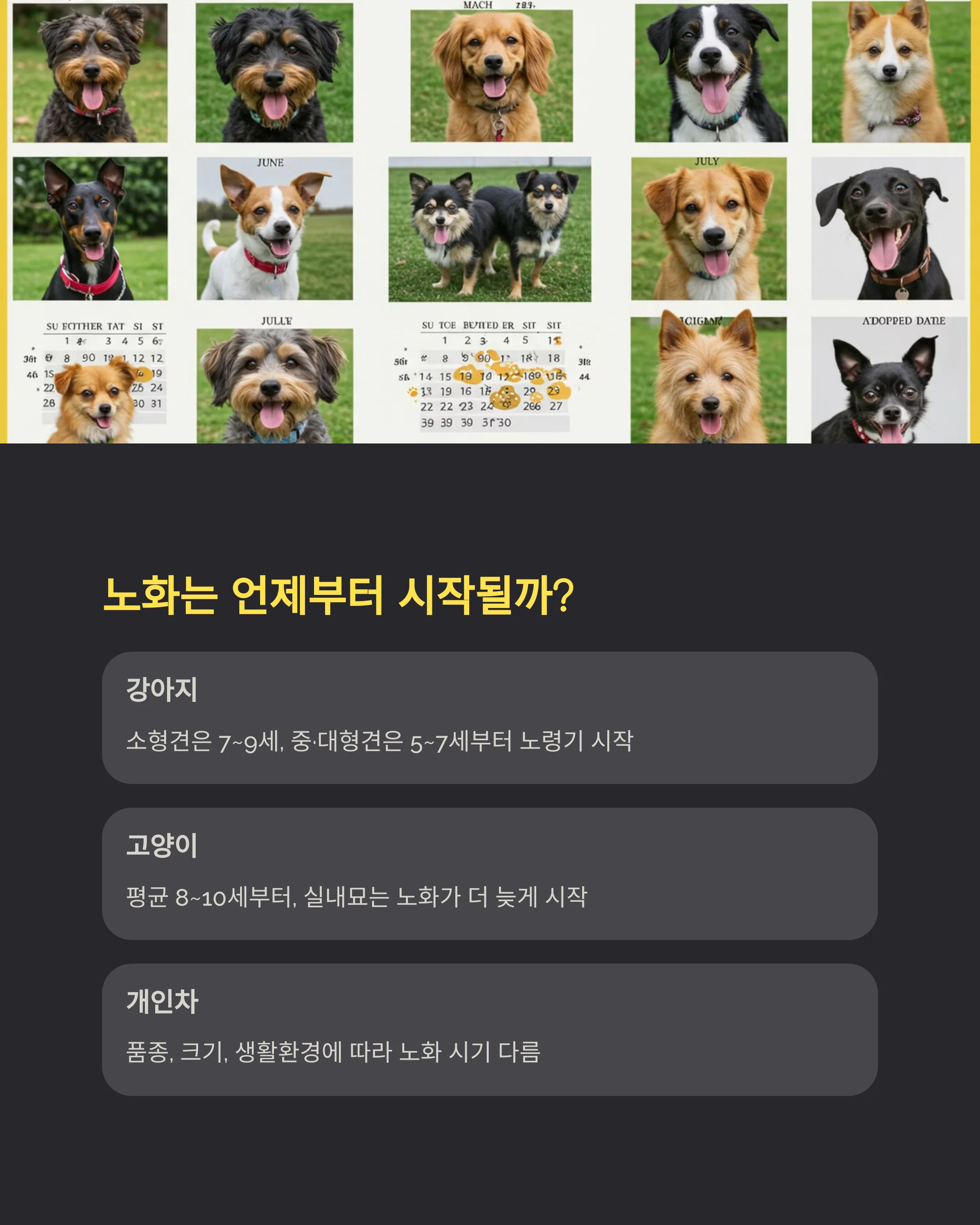 📆 강아지 & 고양이 노화 시작 시기 비교표 🐶🐱