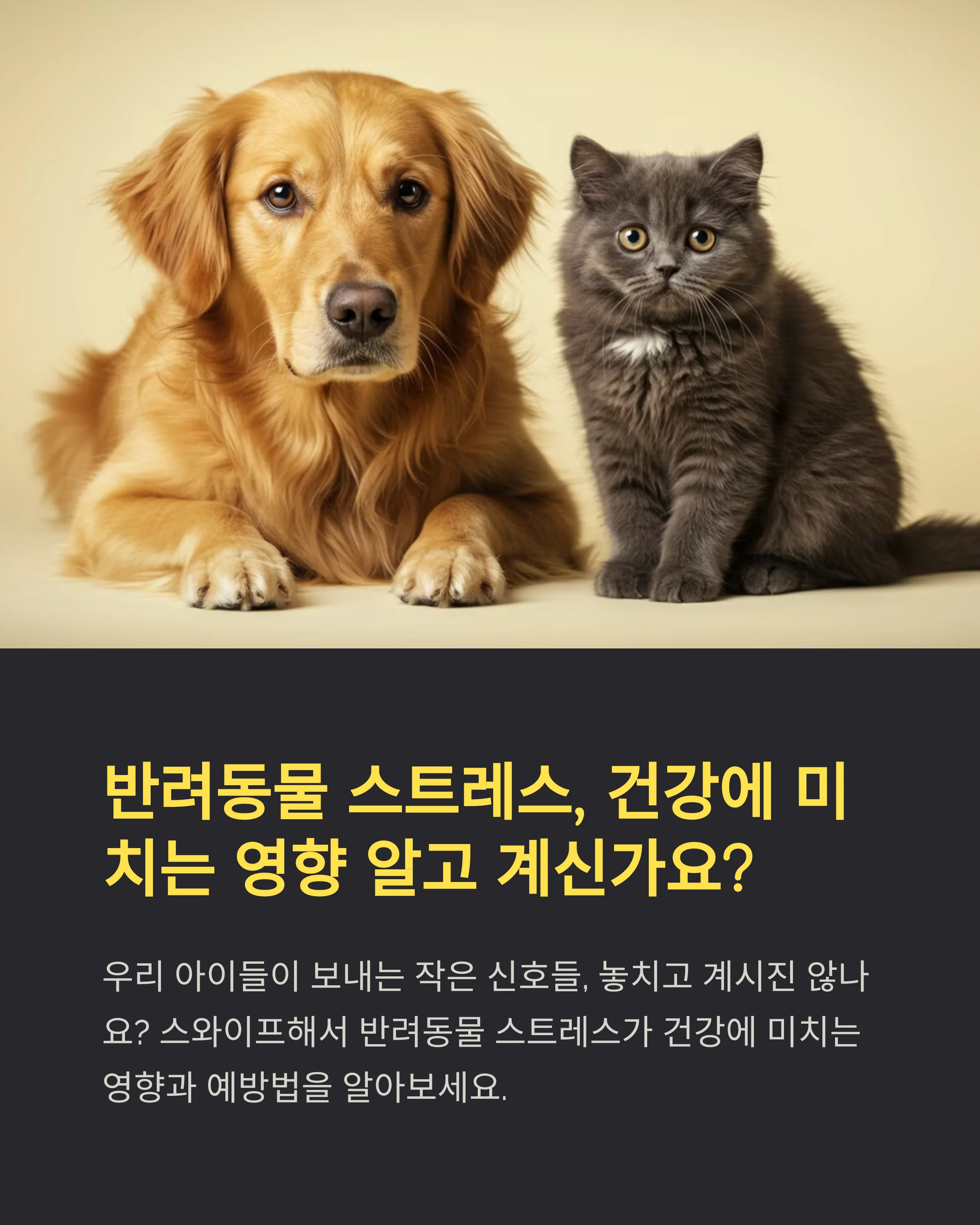어요.** 특히 반려동물은 말로 표현하지 못하기 때문에, 스트레스를 몸으로 드러내는 경우가 많답니다. 😿🐶
