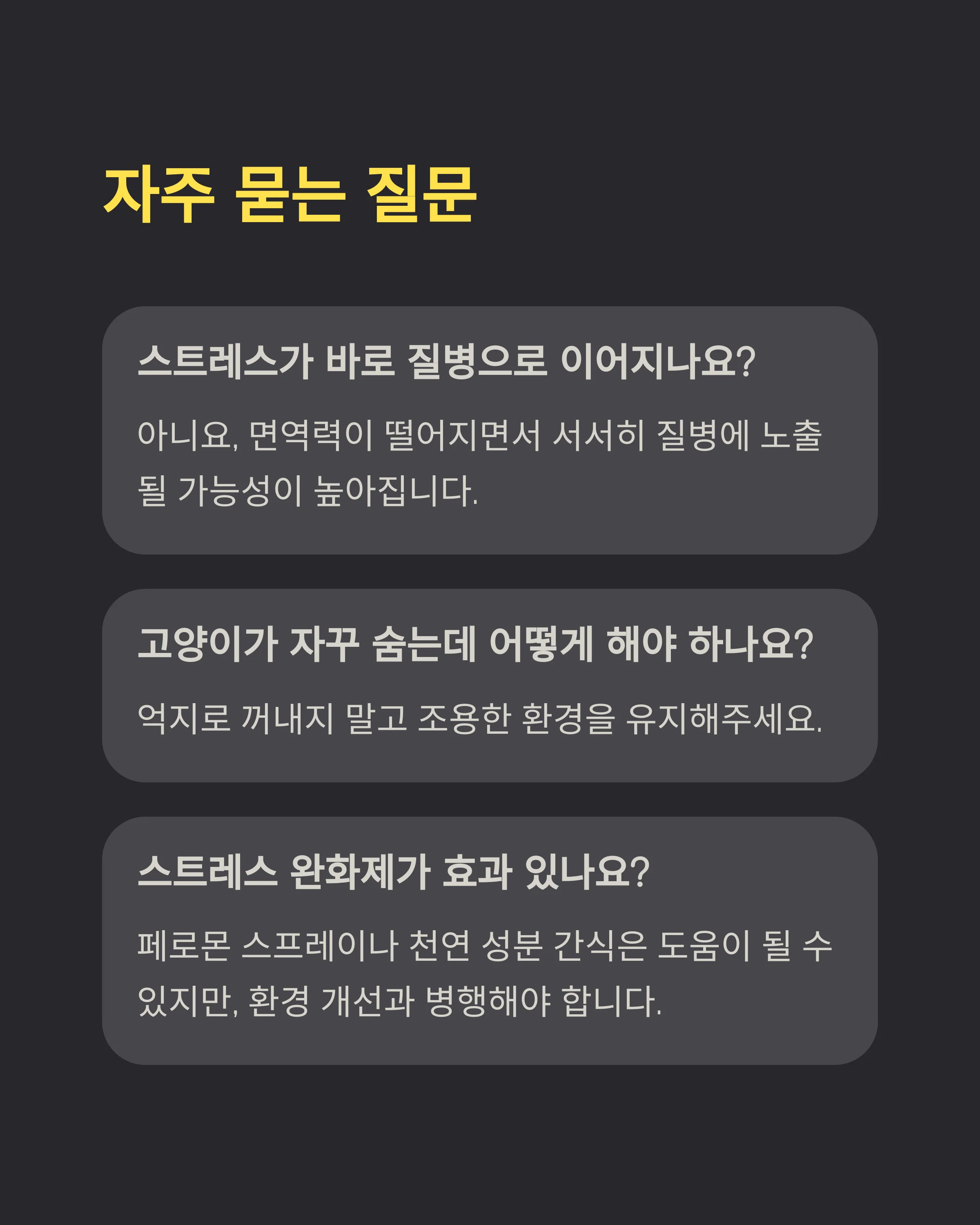 Q1. 반려동물이 스트레스를 받으면 바로 질병이 생기나요?