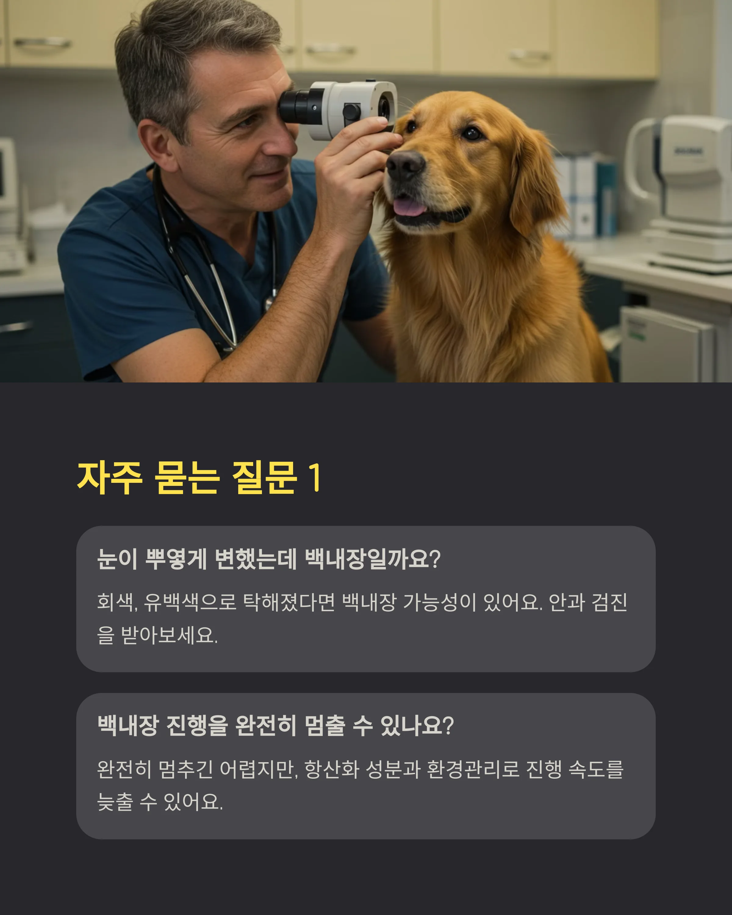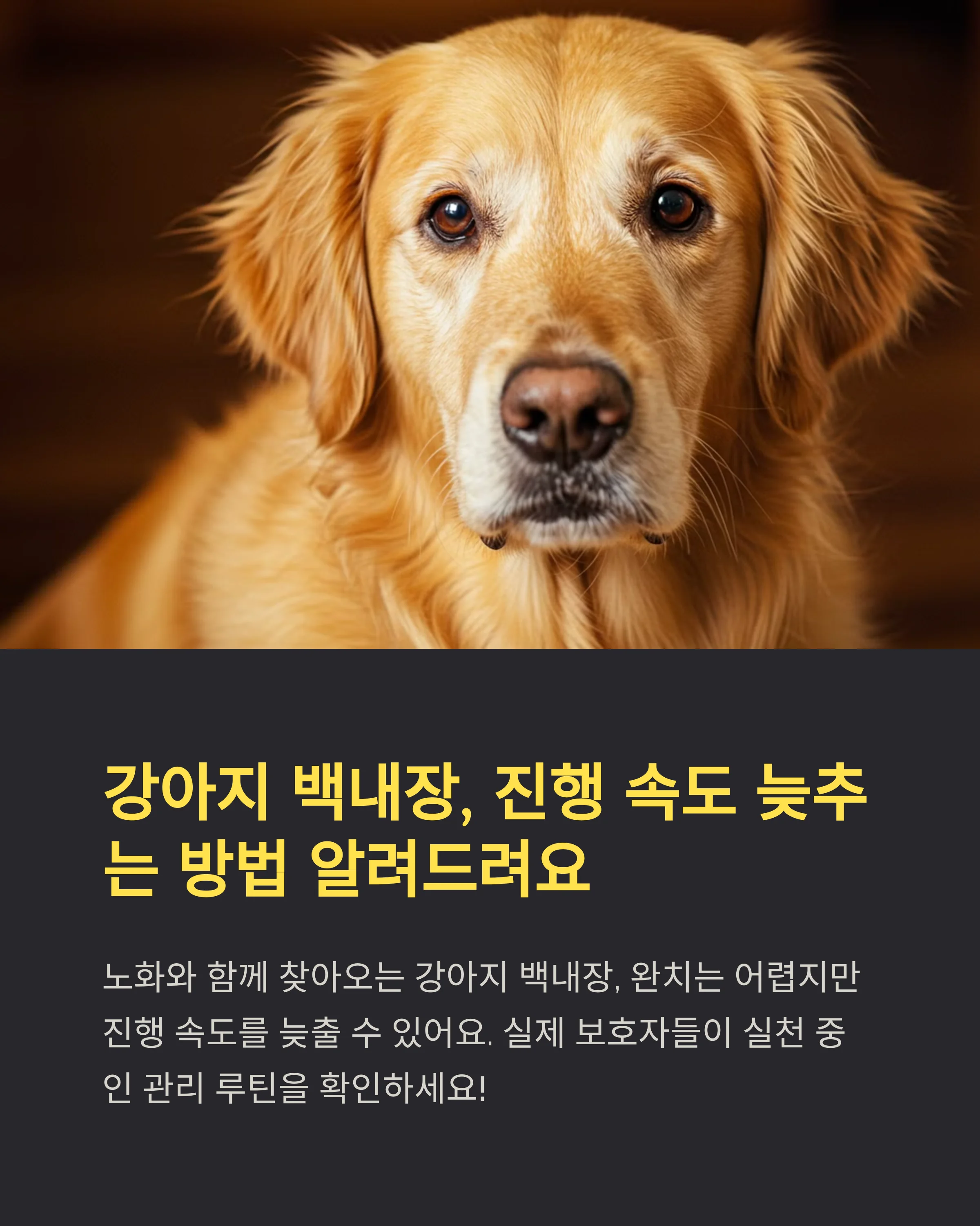 강아지 백내장은 노화와 함께 흔히 나타나는 눈 질환이에요. 시력이 점점 흐려지고, 심하면 실명까지 이어질 수 있죠. 그런데요, 완치를 기대하기는 어렵지만 생활 습관을 잘 조절하면 진행 속도를 꽤 늦출 수 있어요. 오늘은 실제 보호자들이 실천하고 있는 백내장 관리 루틴을 알려드릴게요.