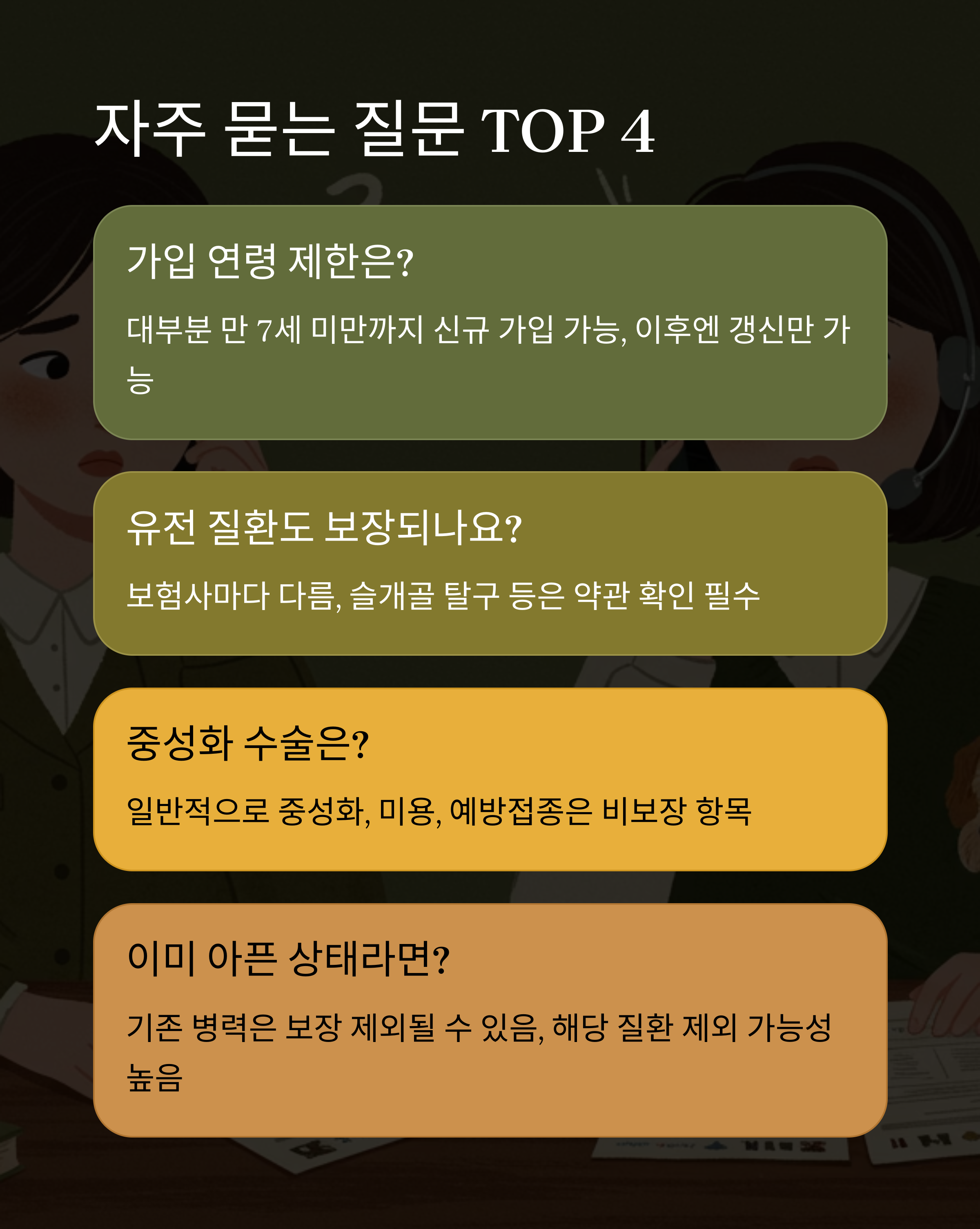 특히 고령견은 가입 자체가 제한될 수 있어요. 5세 이전에 가입해두는 게 가장 좋아요! 💡🐶📑