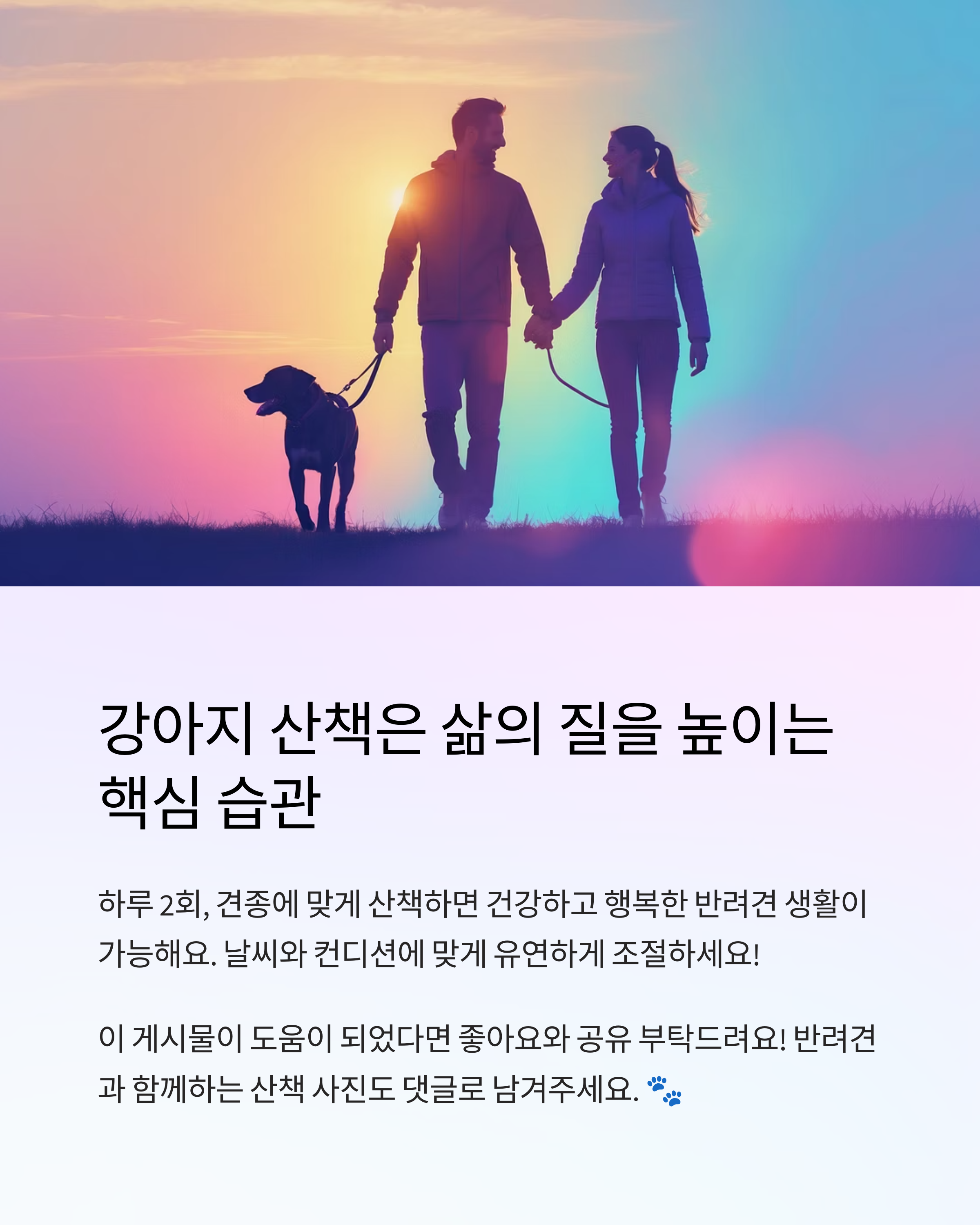 꾸준한 산책은 반려견의 삶의 질을 높여주는 핵심 루틴이에요. 산책이 적을수록 문제 행동이 생길 가능성도 높아져요! 🐶💡