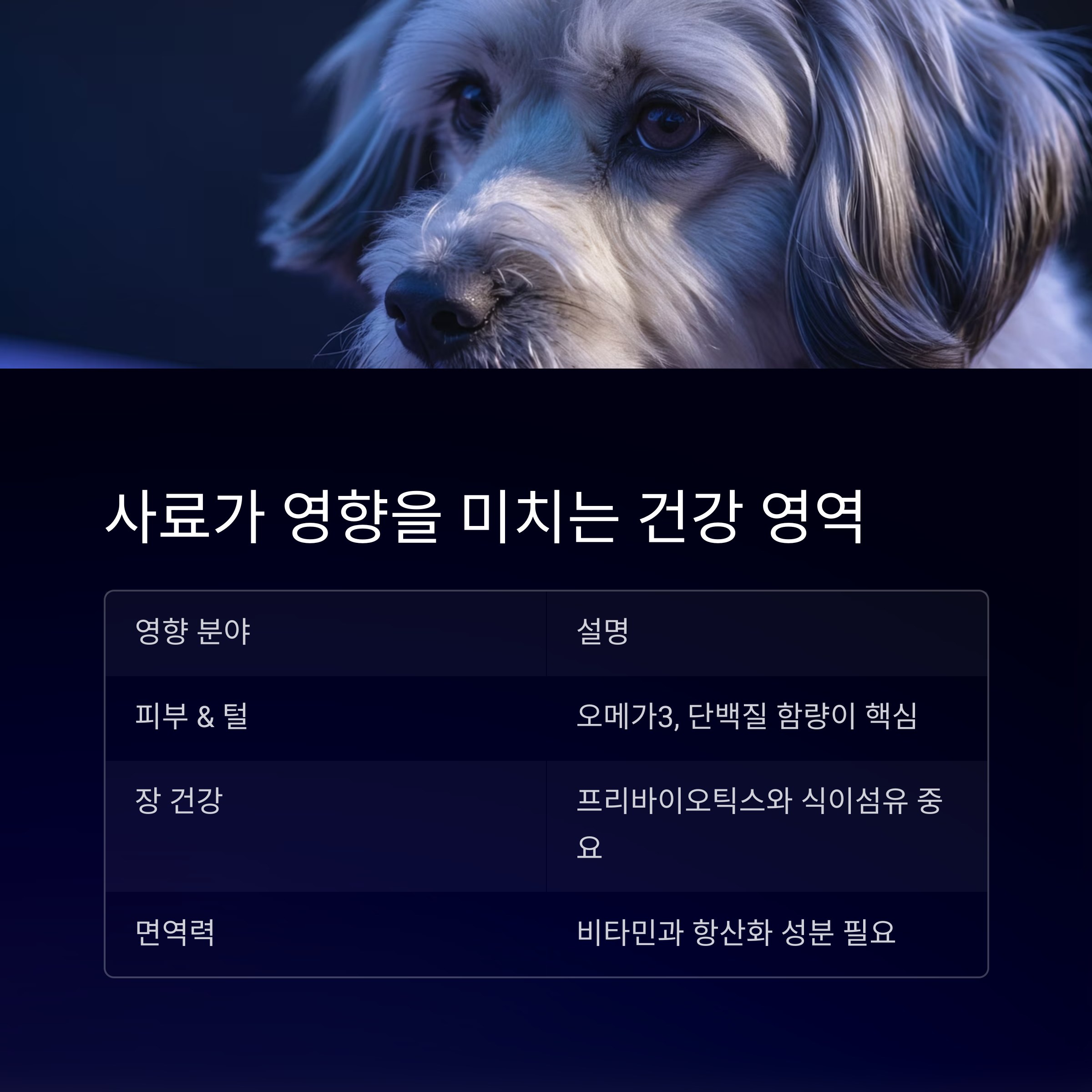 | 피부 & 털 | 오메가3, 단백질 함량이 핵심 |