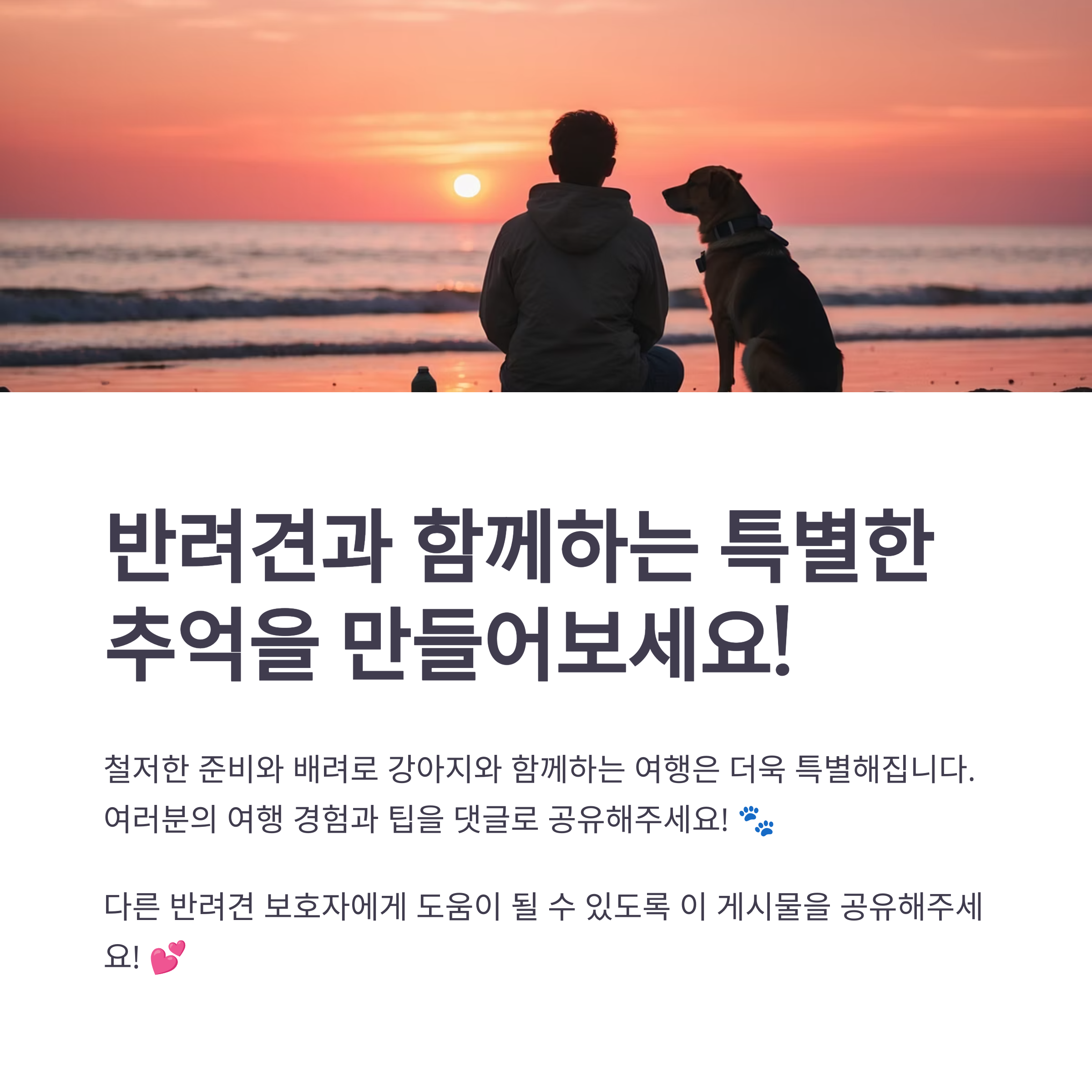 특히 함께 걷고, 쉬고, 놀면서 보호자와 더 깊은 신뢰가 생겨요. 여행은 강아지에게 '세상을 배우는 경험'이자, 보호자에겐 '아이를 더 이해하는 기회'랍니다. ✨🐾