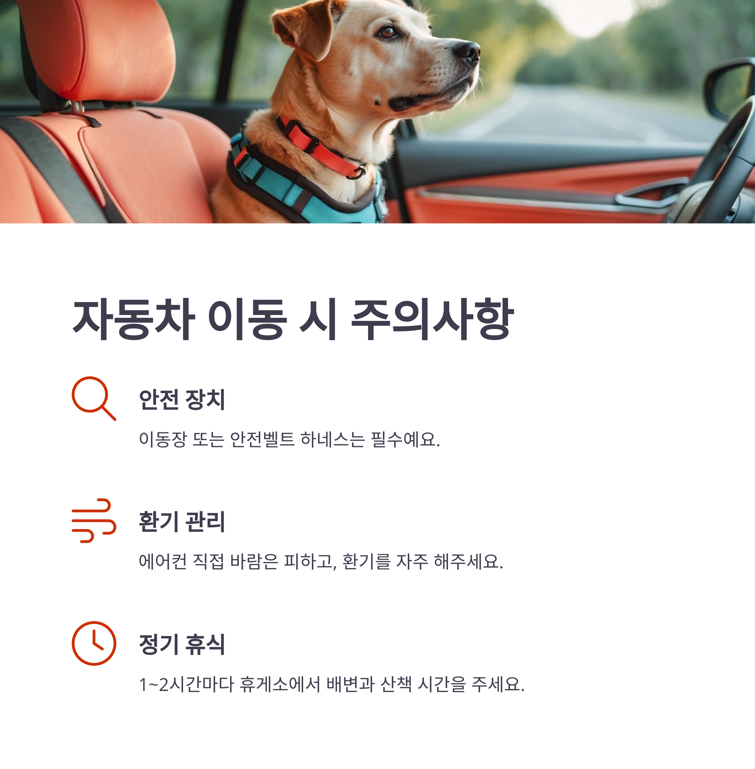 자동차 이동은 강아지에게 낯설고 긴장되는 상황일 수 있어요. 보호자가 충분히 배려하고 대비해야 사고나 멀미 없이 여행을 즐길 수 있답니다.