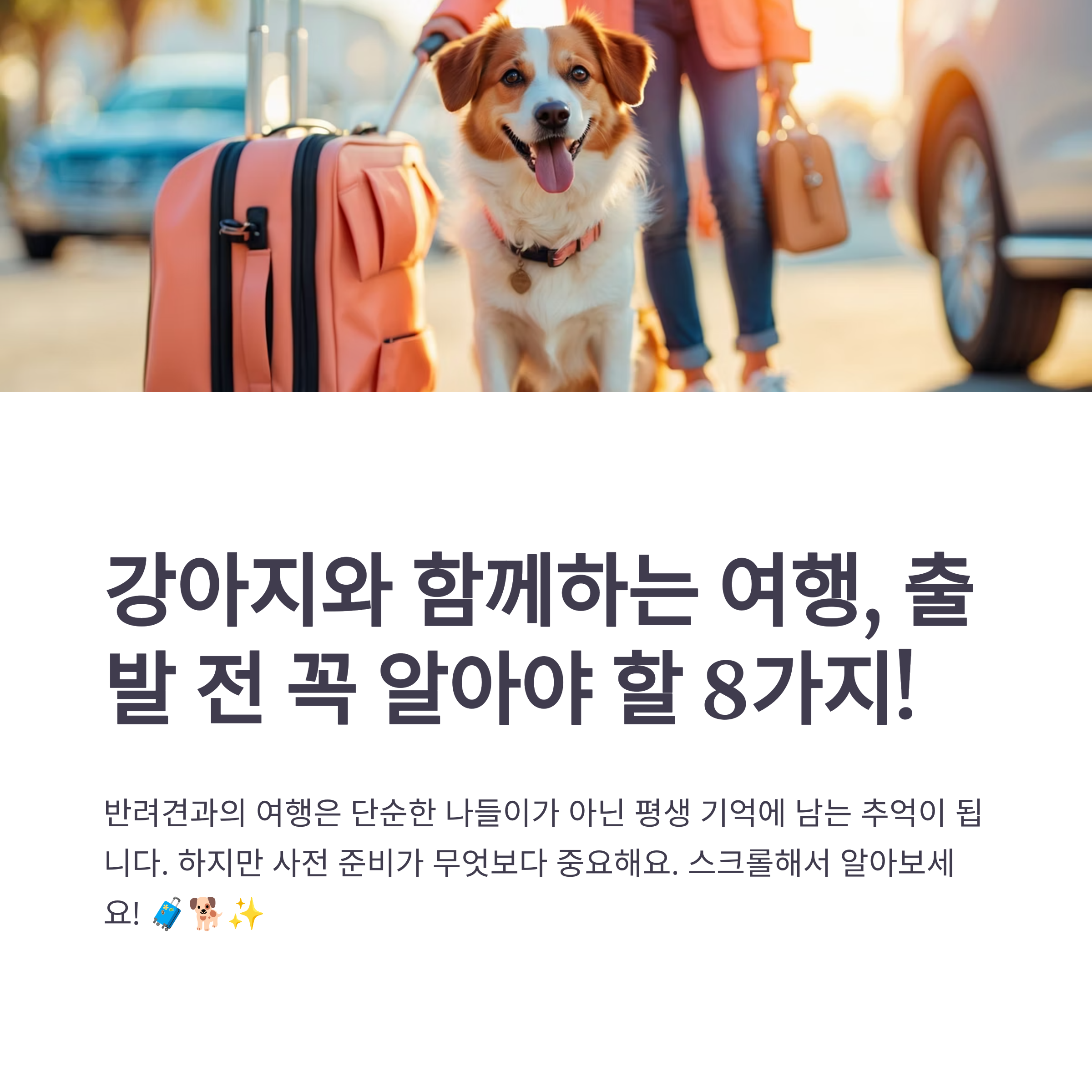 이 글에서는 반려견과의 여행을 안전하고 즐겁게 만들기 위해 출발 전 반드시 알아야 할 8가지 핵심 정보를 정리해드릴게요! 🧳🐕✨