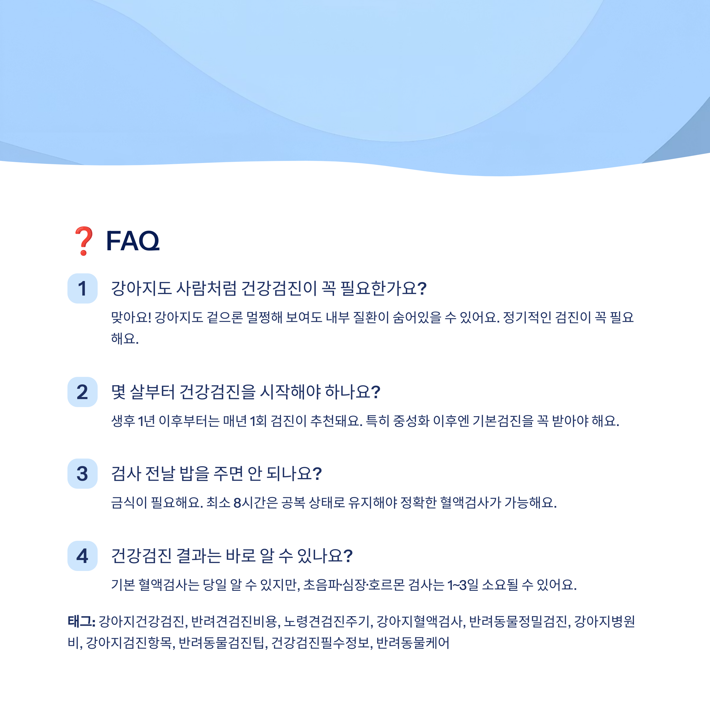 이번 글에서는 건강검진의 필요성과 연령별 주기, 항목별 설명과 비용 정보까지 보호자라면 꼭 알아야 할 필수 정보를 알려드릴게요! 🩺📋