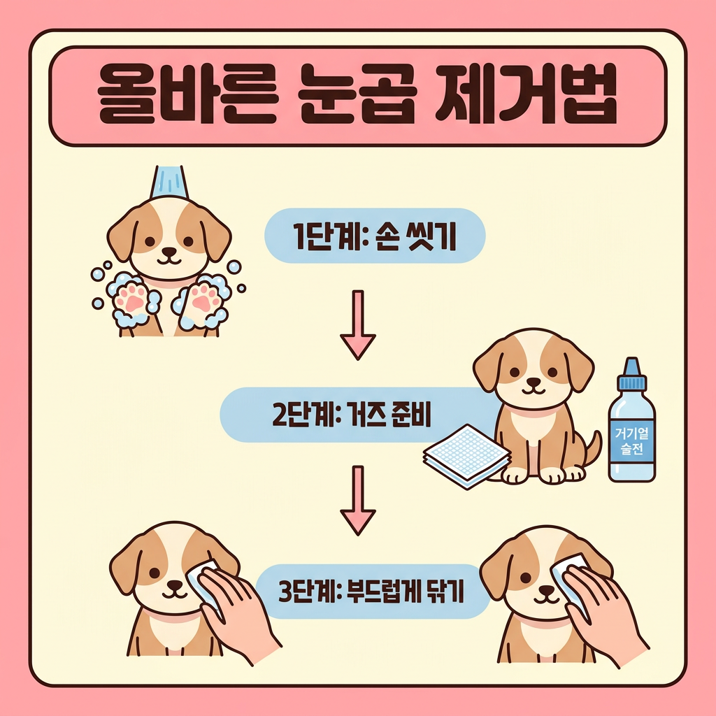 눈곱이 생리적인 범위 내에 있다고 판단된다면, 올바른 방법으로 제거해 주는 것이 눈 건강 유지에 도움이 돼요. 수의사에게 직접 배운 단계별 방법을 공유해 드릴게요.